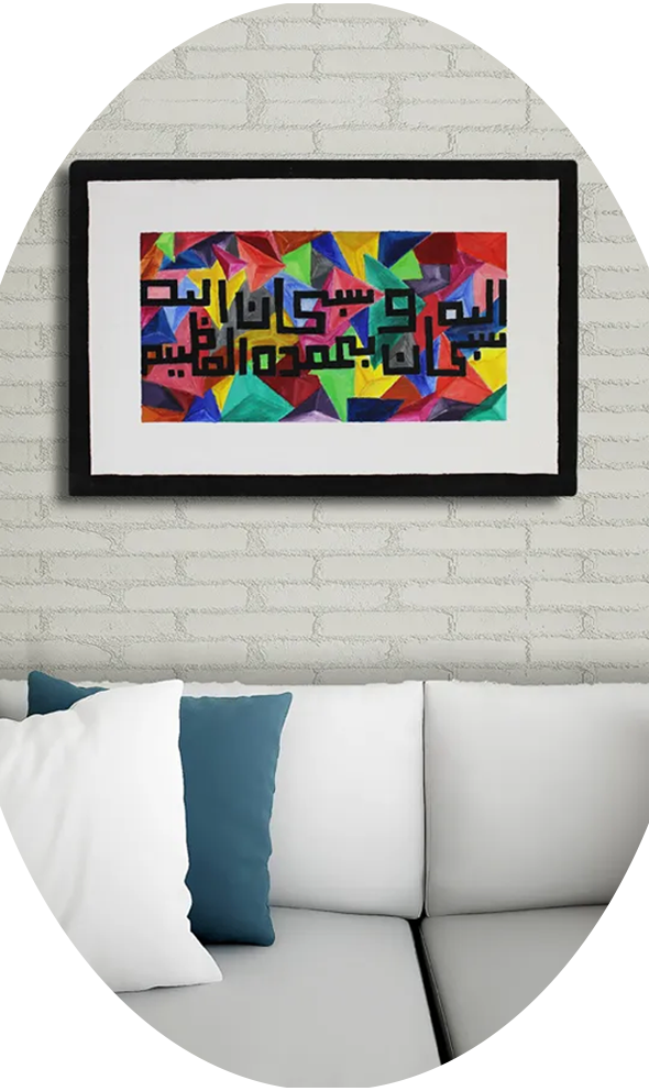 What defines Bushra’s work is her unique ability to make Abstract Islamic Art feel incredibly modern and deeply personal. She takes powerful, traditional concepts like Tasbeeh (remembrance) and Zikr (invocation) and transforms them into a contemporary visual language anyone can connect with. She works exclusively with 100% acrylics on canvas, achieving layered textures and a beautiful soulful depth, often sealing her work with a high-gloss coat that makes the colors pop. This meticulous care is the secret ingredient – it shows the patience and genuine commitment she has to creating art that truly evokes a state of peace and mindfulness in those who stop to look.