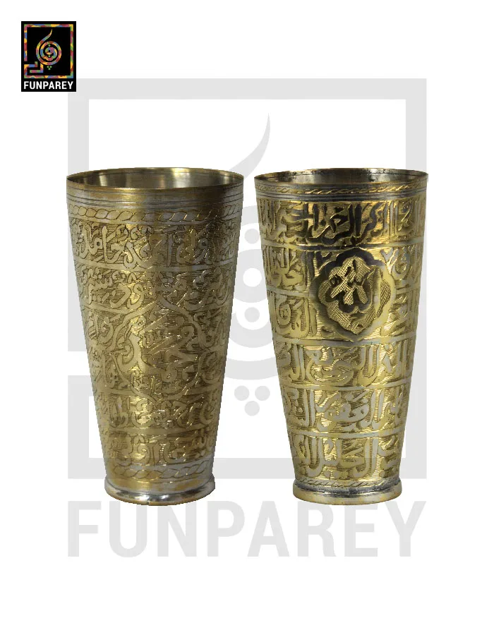 Handcrafted Brass Glass Golden Pair with Embossed “Asma ul Husna” and “Asma e Mohammad”
