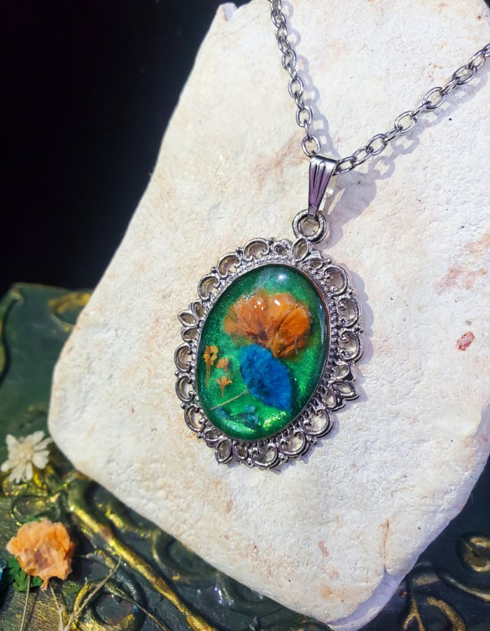 Handcrafted Resin Pendant Botanica - Luna 7x9
