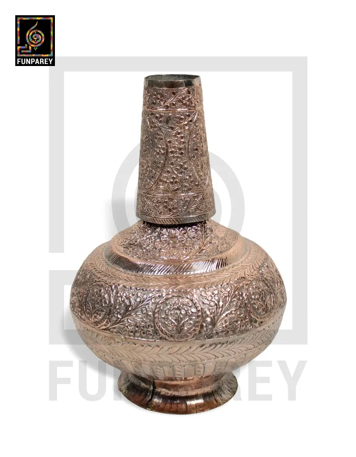 14″ Heavy Copper Classic Antique Surahi With Copper Flask (Rare)
