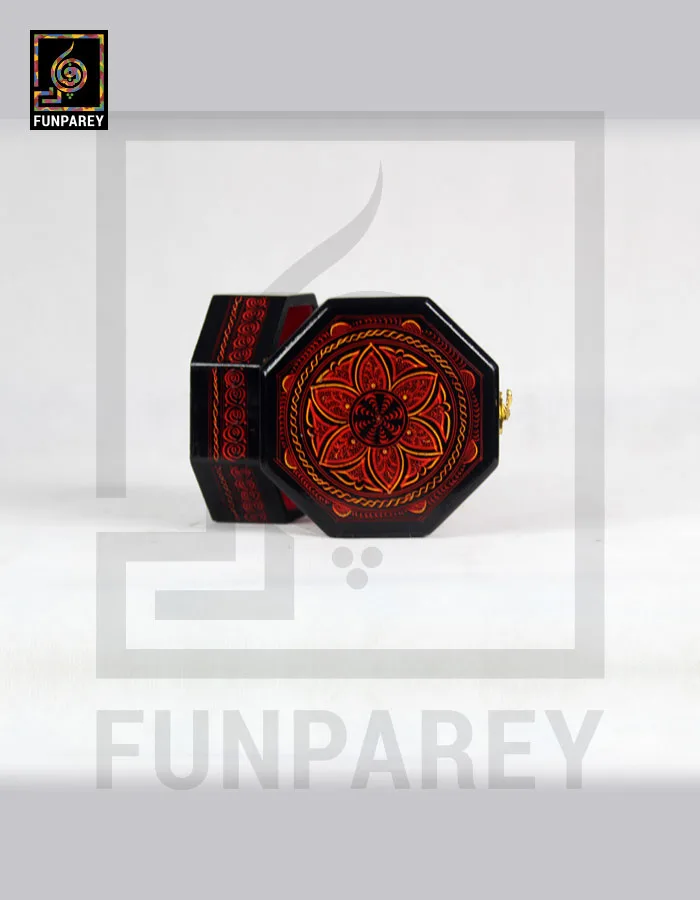 8 Sided Wooden Jewelry Box 5″ with Lacquer Art
