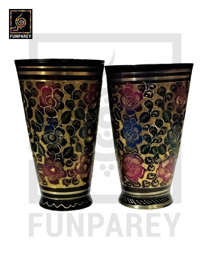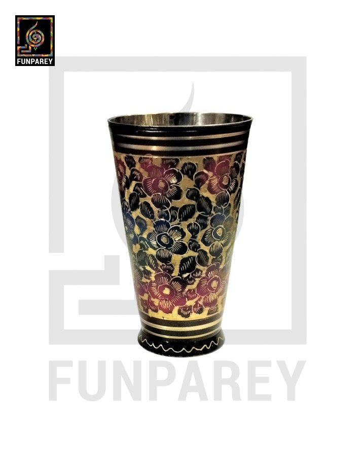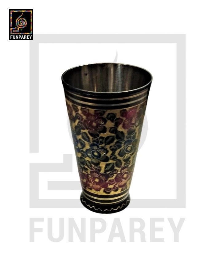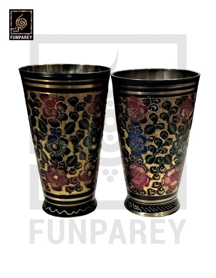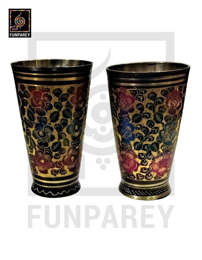 - These Calligraphic Brass Glasses are painted and finished by hand in multiple color combos of Motif work. Hence, you may spot color differences which is OK.