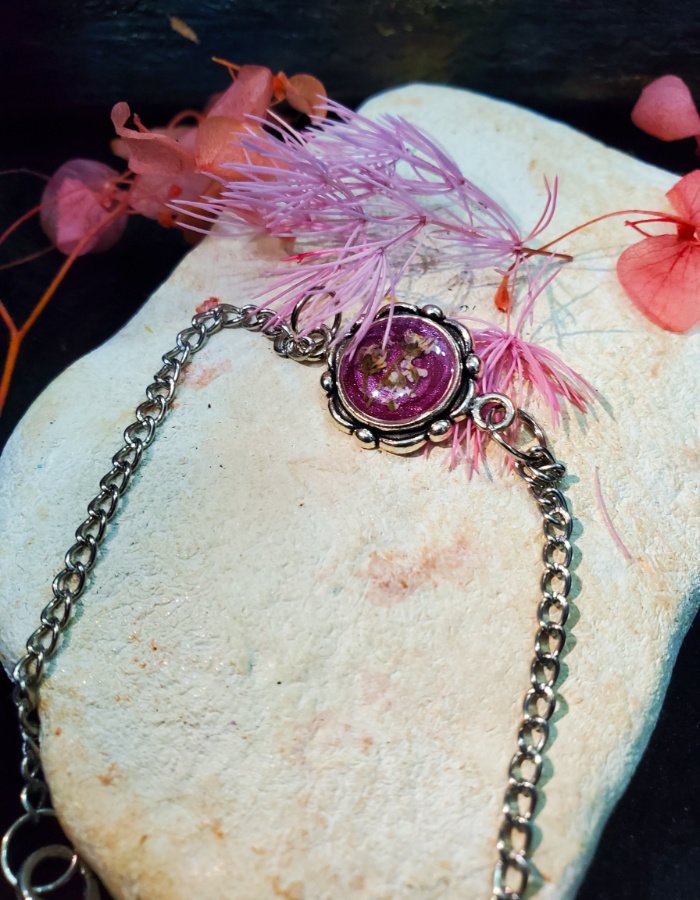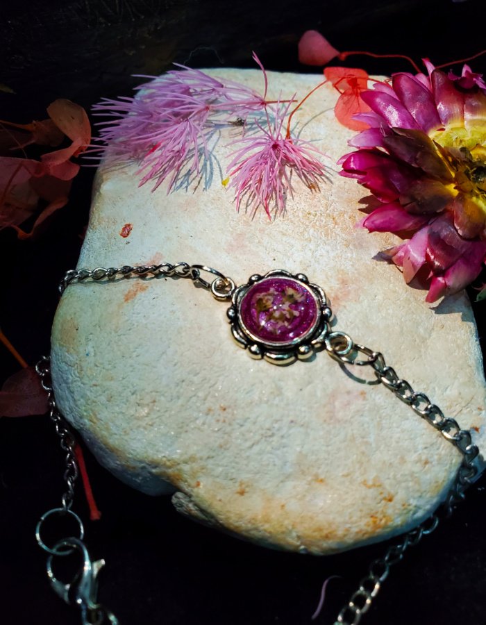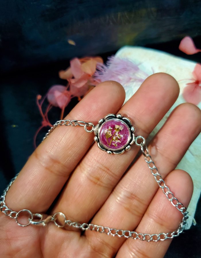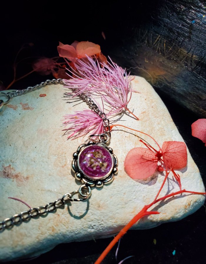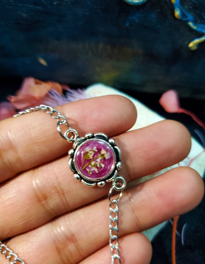 - Circular resin centerpiece with preserved blossoms — colorful hues symbolizing joy, renewal, and vitality.