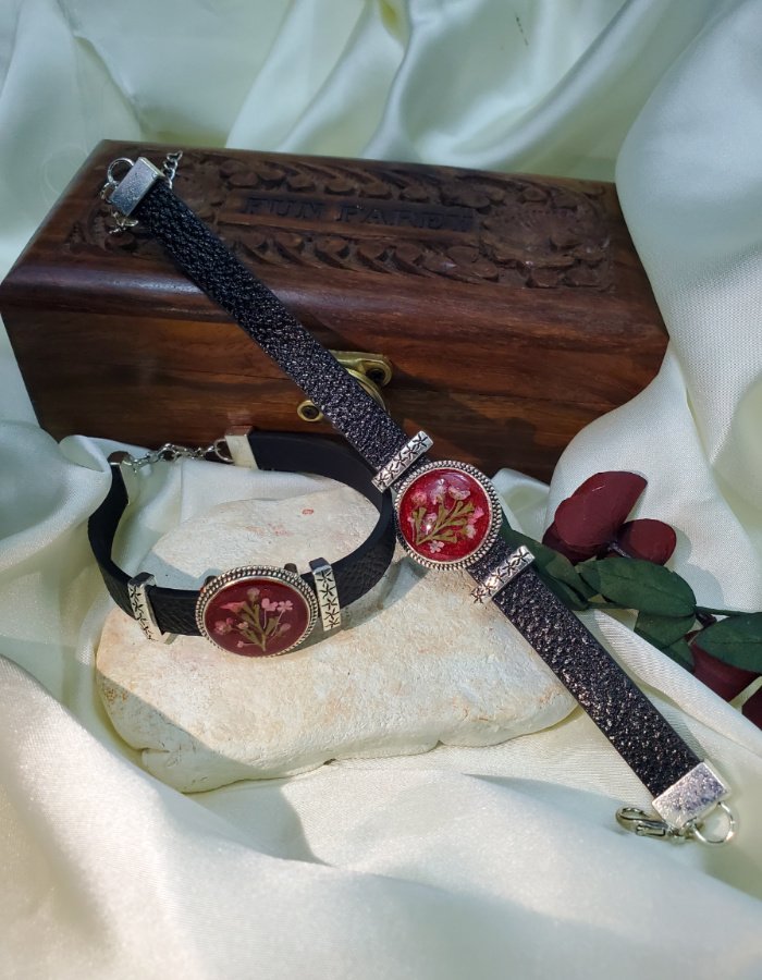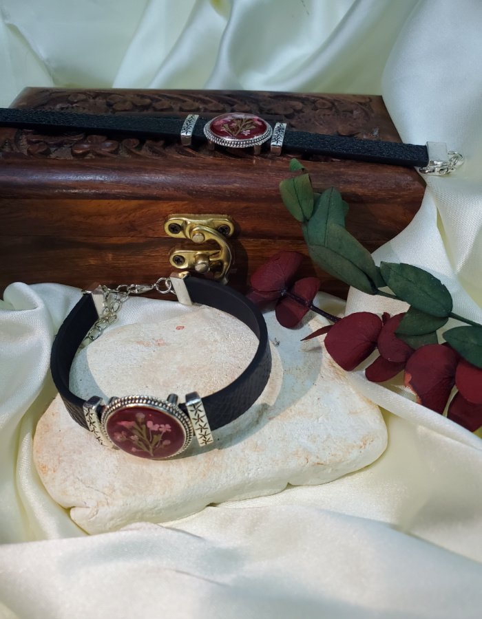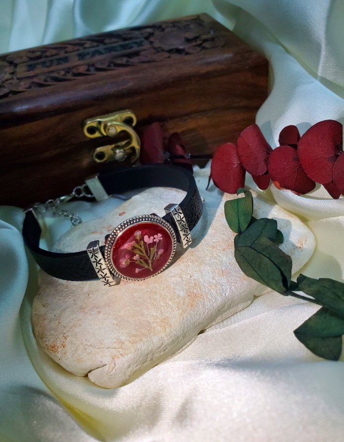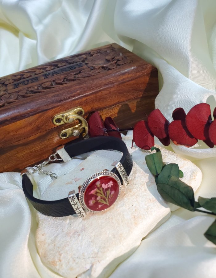 Crimson Bloom Leather Strap Bracelet
