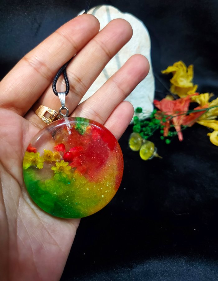 - Resin Base: Clear resin with multicolored gradient, magnifying floral details