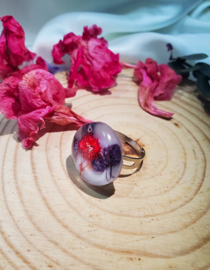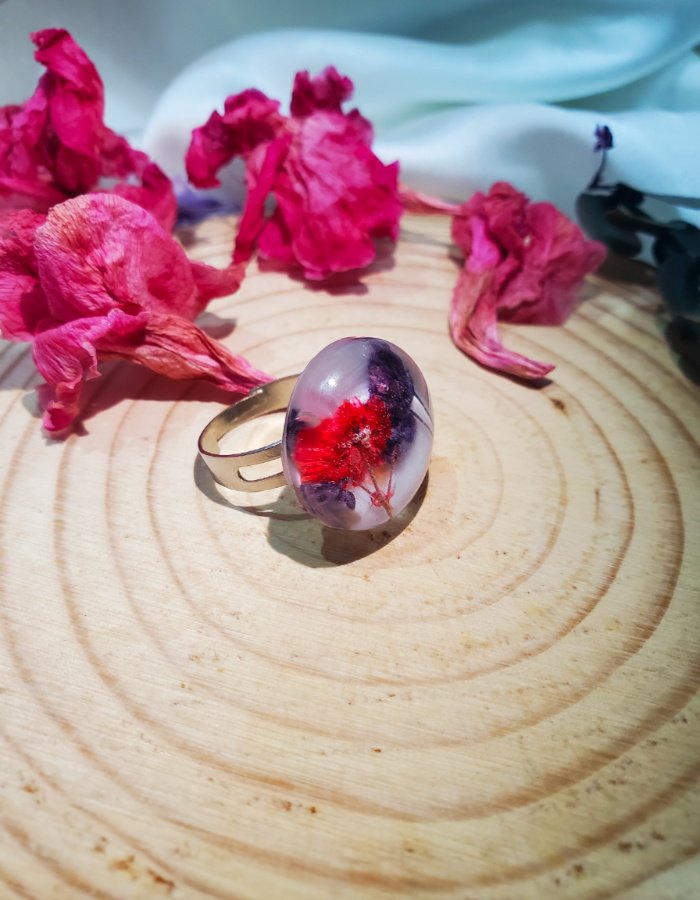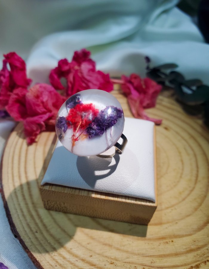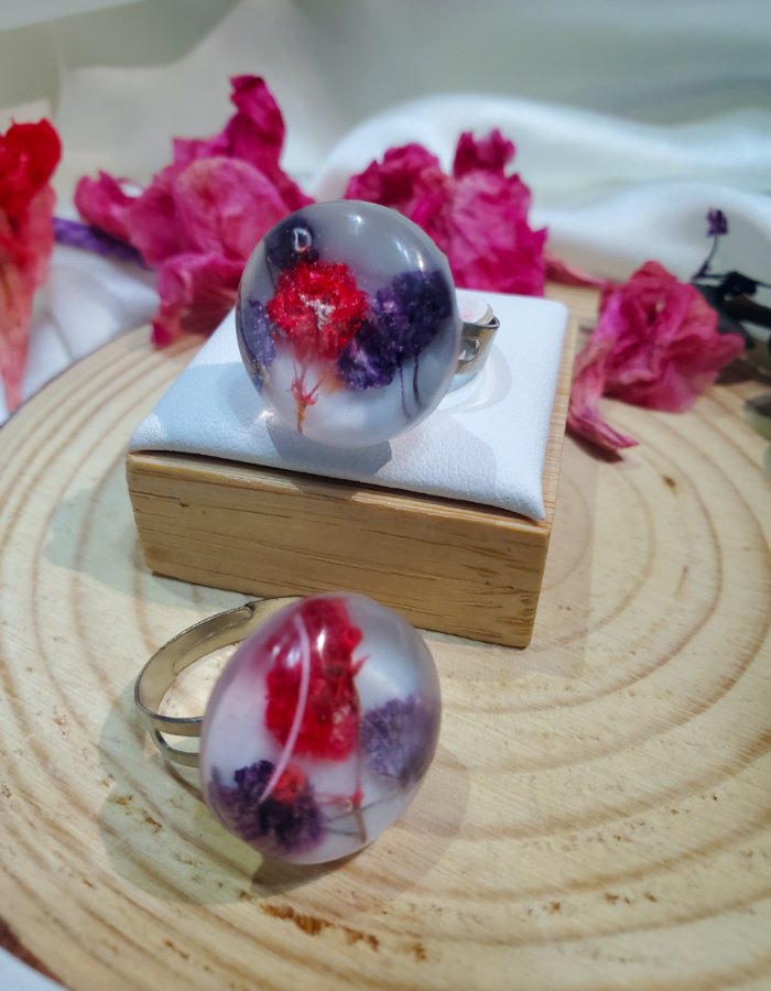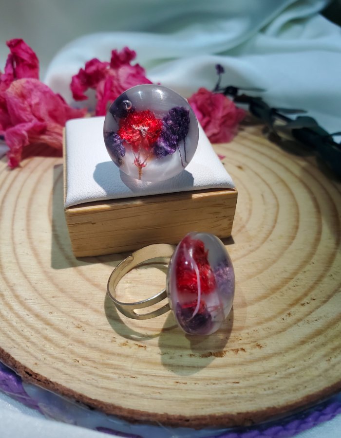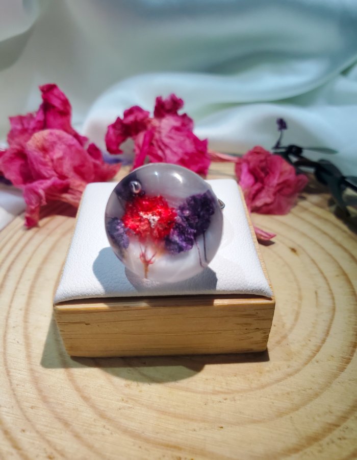 - Ring Shape: Dome-shaped resin top for magnified floral depth