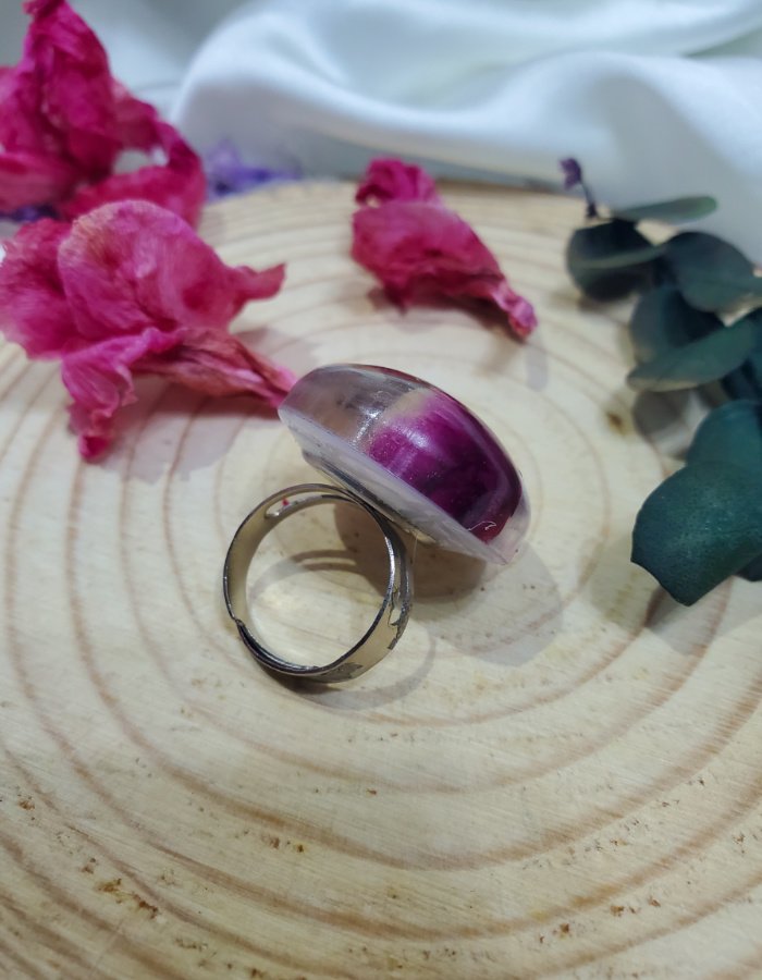 - Ring Shape: Dome-shaped resin top for magnified floral depth