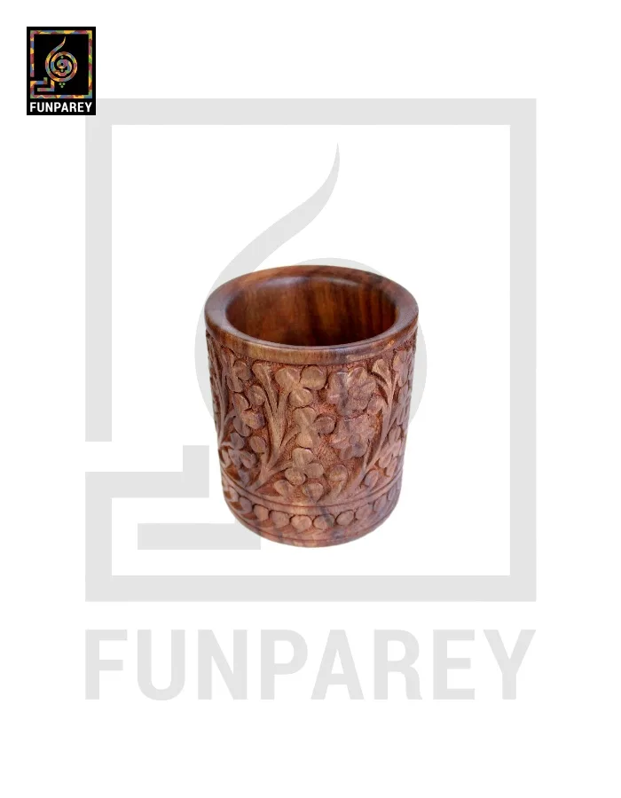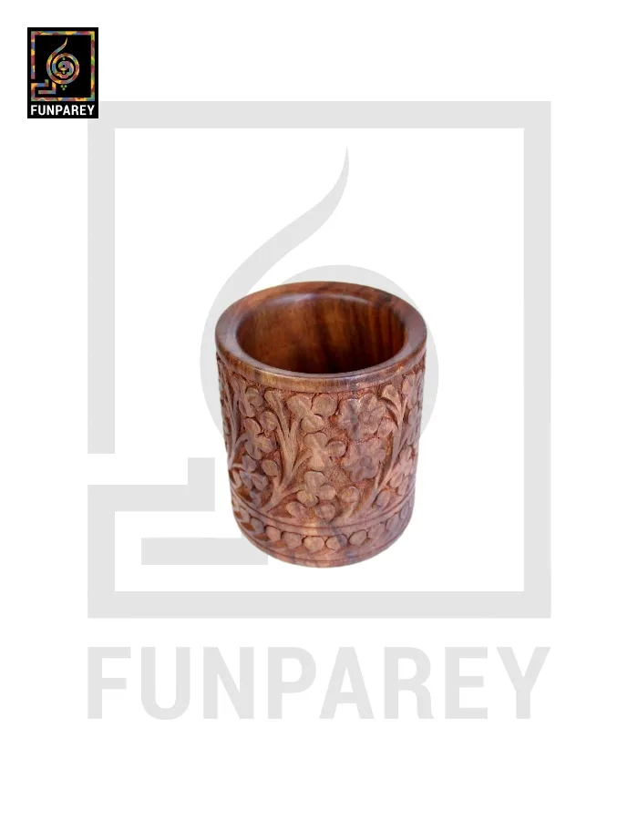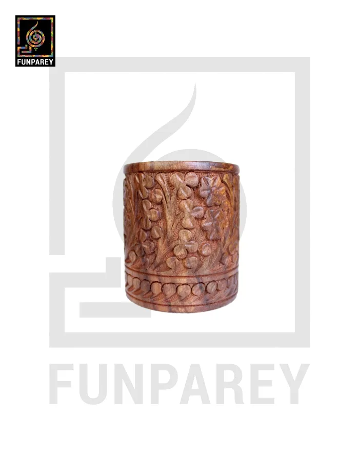 Hand Carved Cylindrical Wooden Accessory Jar Fat