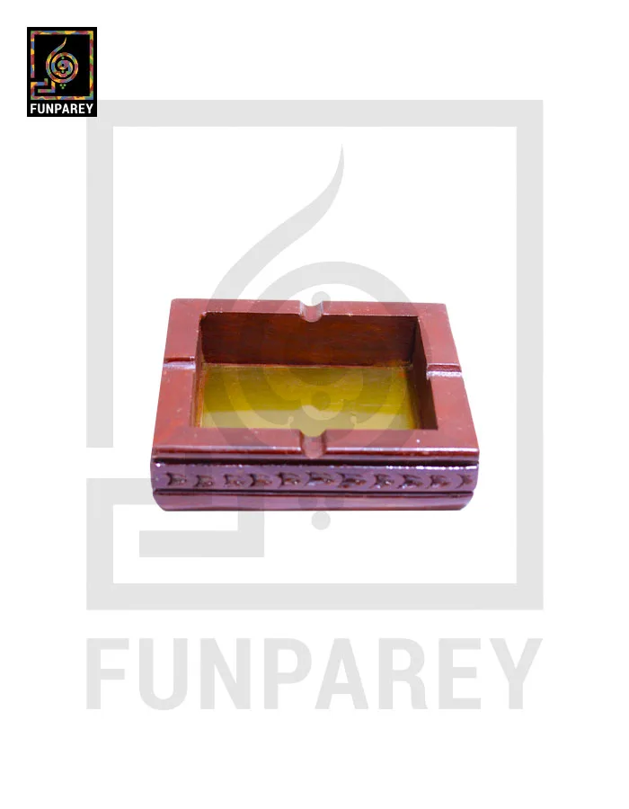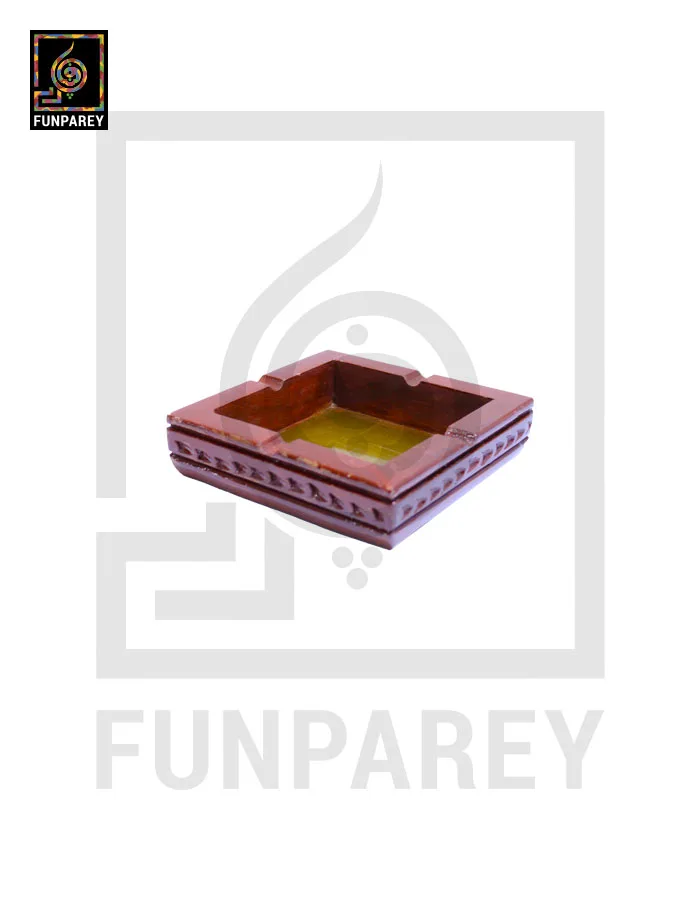 Hand Carved Wooden Ashtray with Metallic Base 4×4