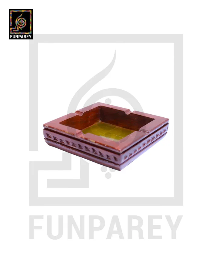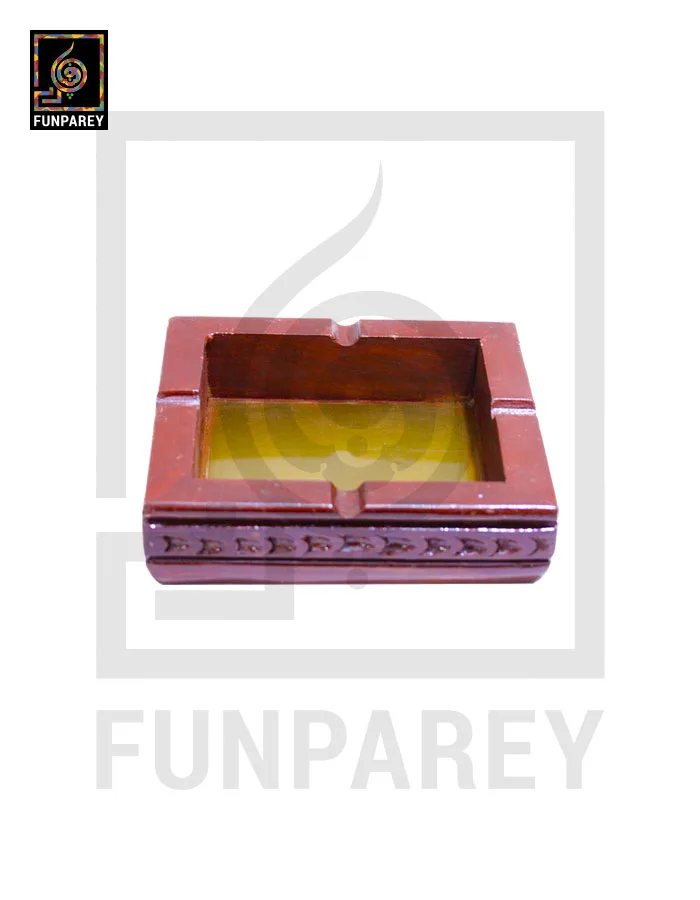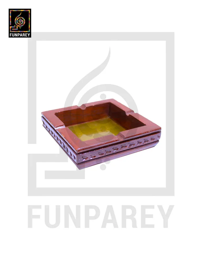 Hand Carved Wooden Ashtray with Metallic Base 5×5