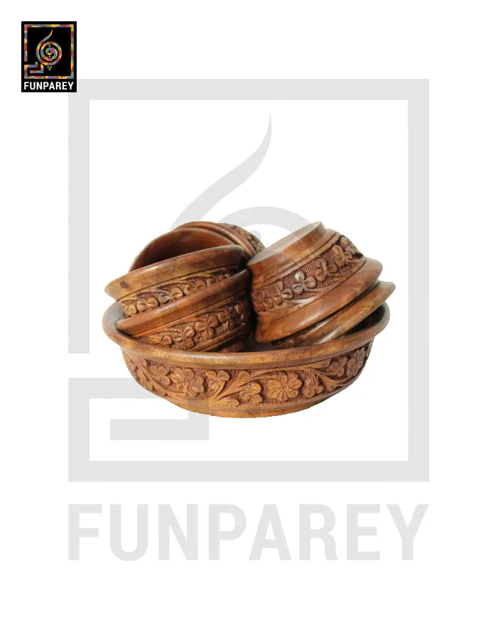 - The Wooden Bowl Set Contains total 7 Hand carved wooden Bowls.