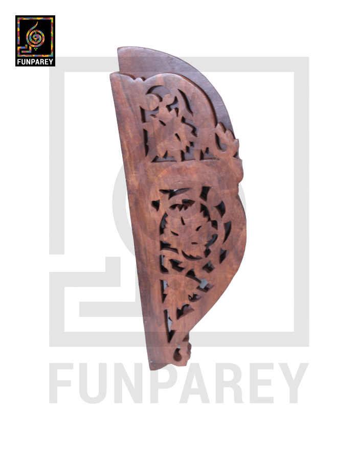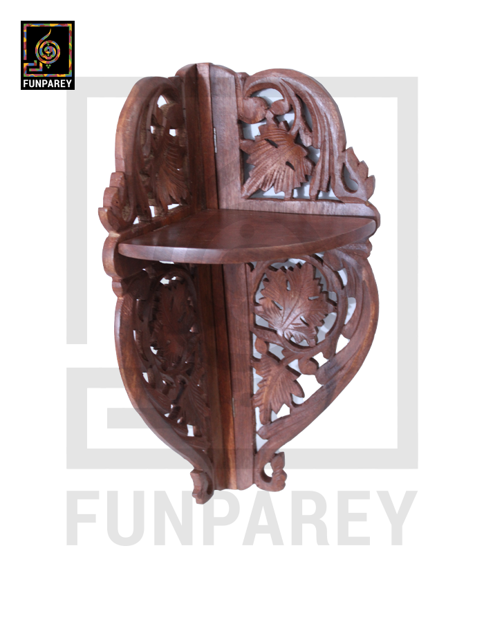 Hand Carved Wooden Corner Wall Shelf Large