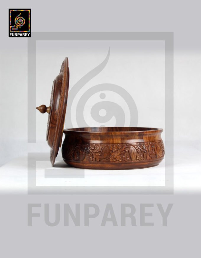 - This Hand Carved Wooden hotpot has a diameter of 12 Inches and the height is 4 Inches.