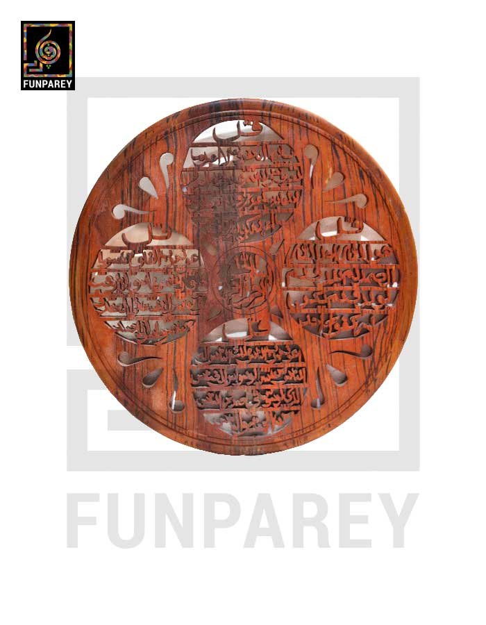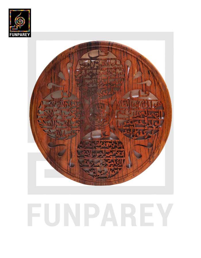 - Surah Al-Ikhlāṣ, Surah Al-Kafirun, Surah Al-Nas and Surah Al-Falaq all have been beautifully calligraphed via carving works on this 18 inch Plate.