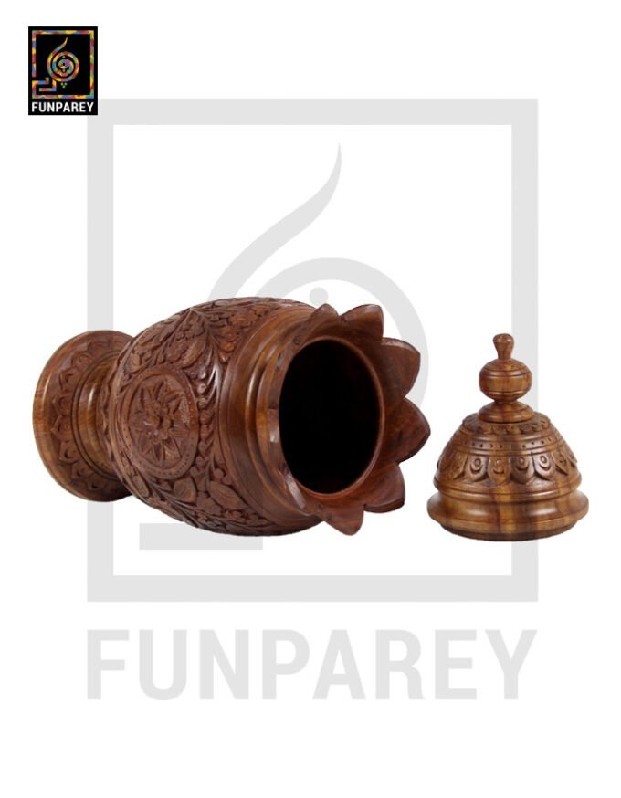 - The Hand Carved Wooden Jar is an ideal container for contents of your choice.
