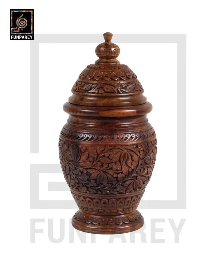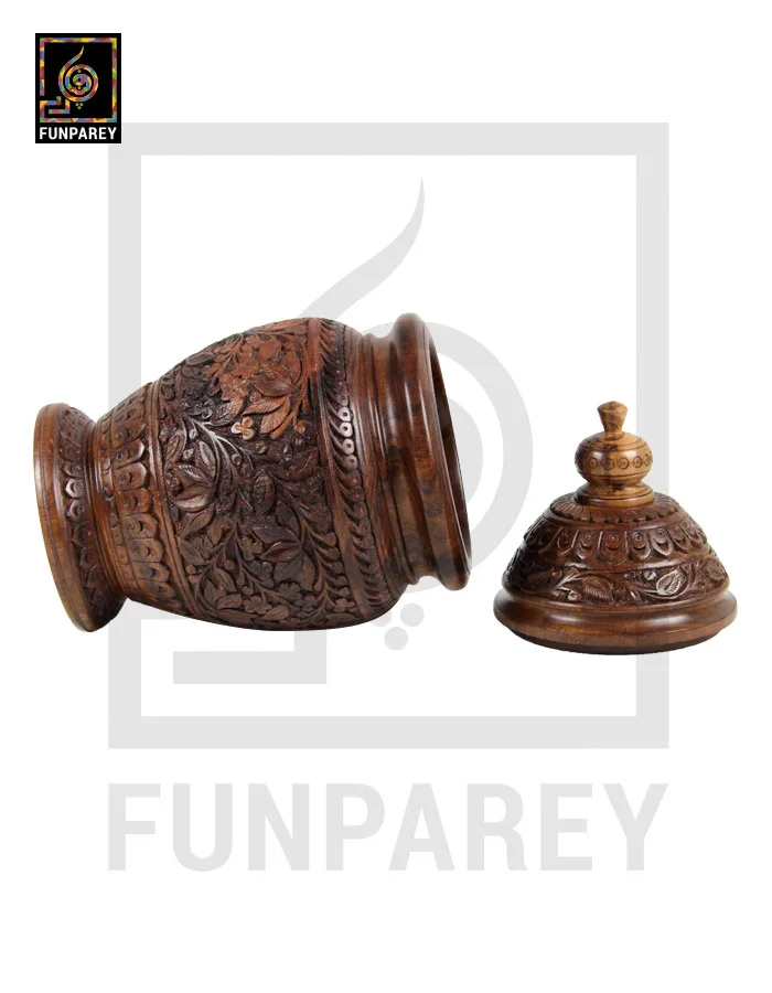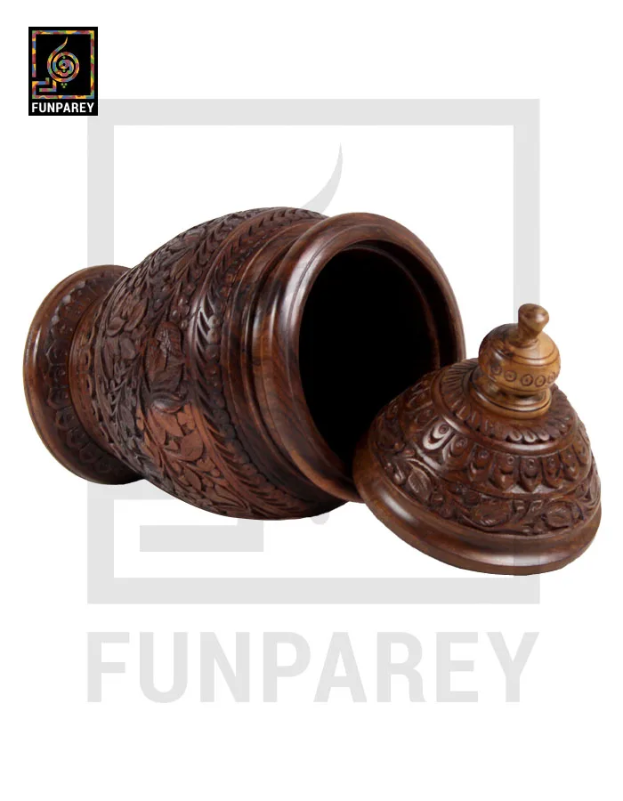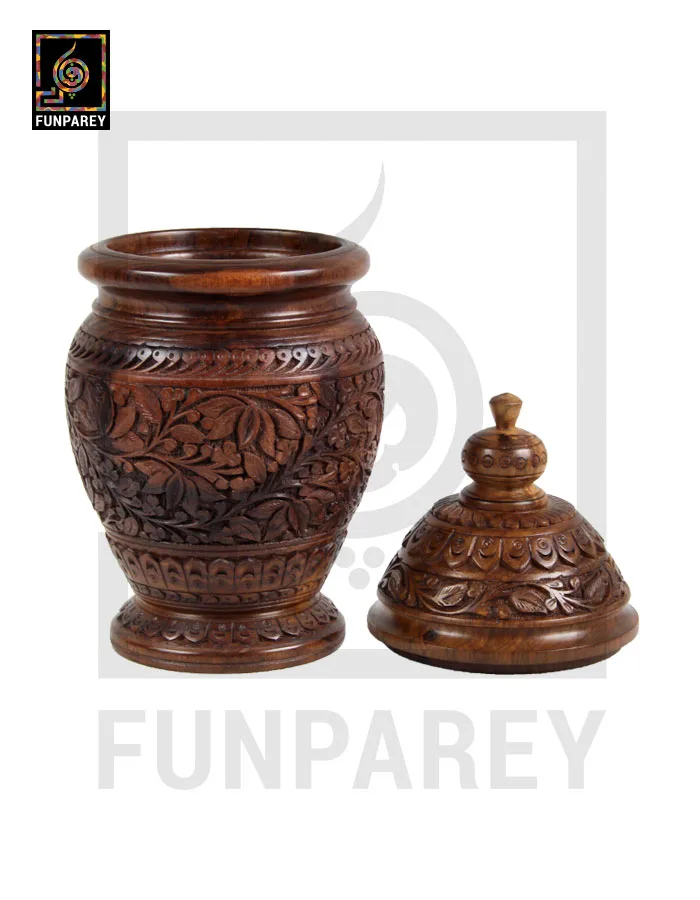 - The Hand Carved Wooden Jar is an ideal container for contents of your choice.