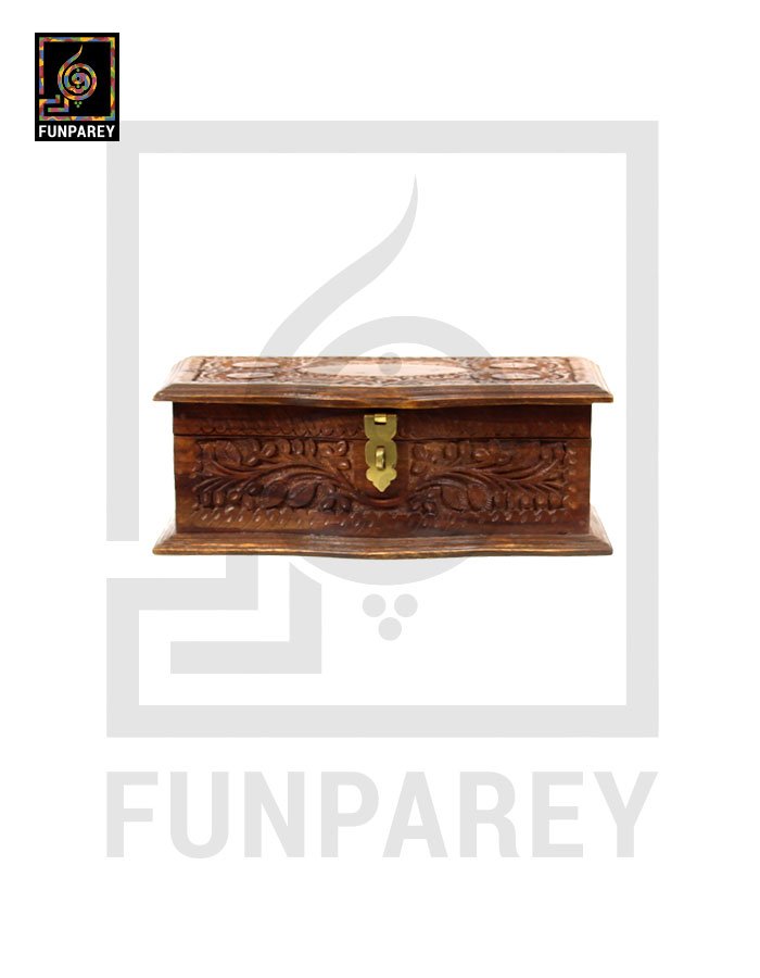 Hand Carved Wooden Storage Box 6/9 With Curved Edges
