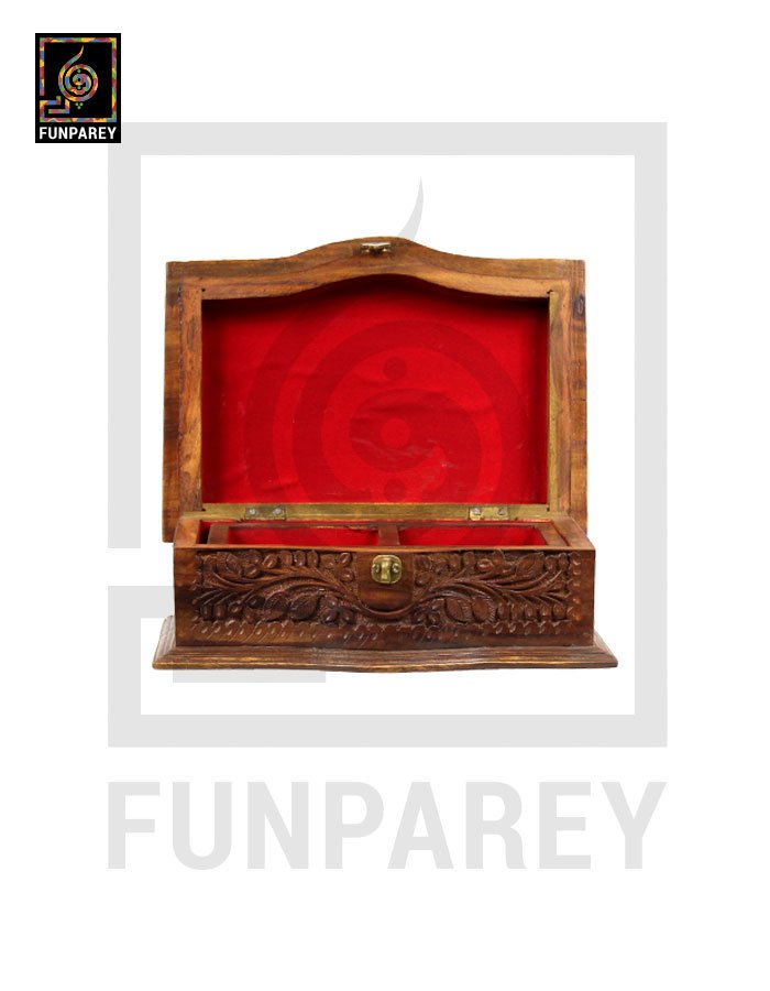 - This wooden jewelry box measures in the width of 6 inches and a length of 9 inches.