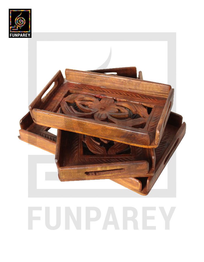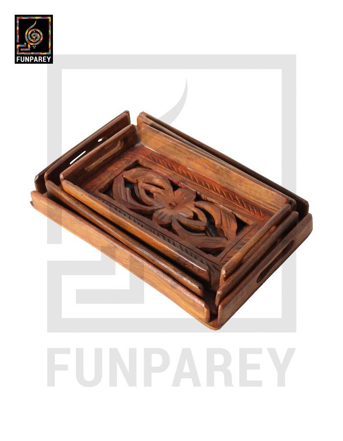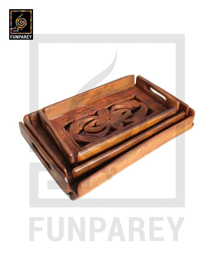 - The particular Wooden tray set has a total of 3 wooden trays in the set.