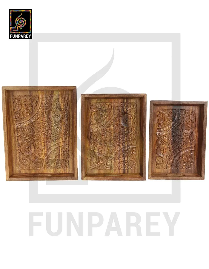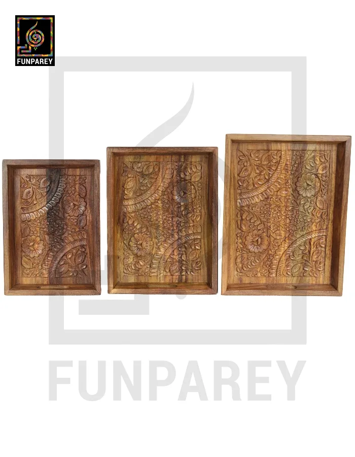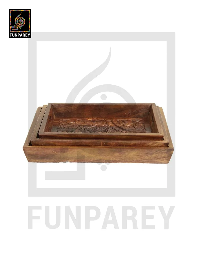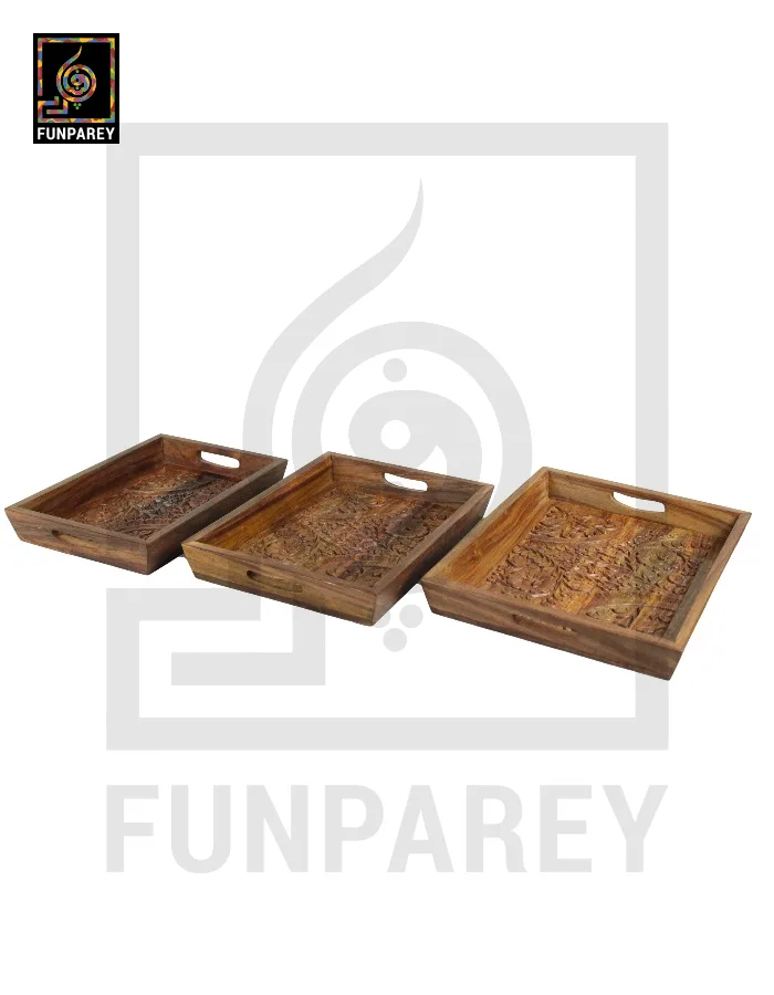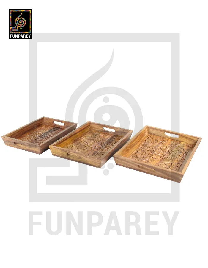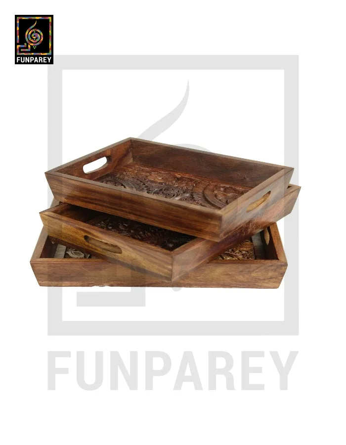 Handcarved Wooden Tray Set