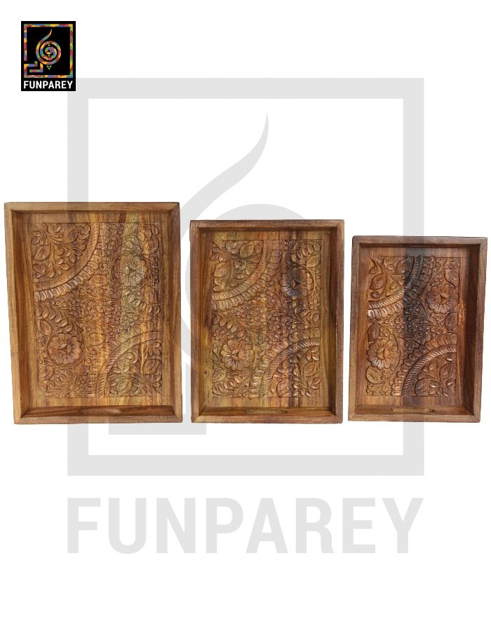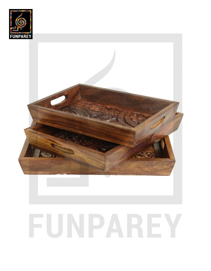 • Set of 3 wooden trays in medium, large, and XL sizes