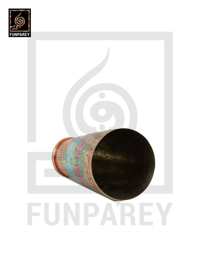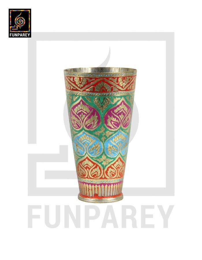 Handcrafted Brass Glass with Embossed Colorful Motif Designs