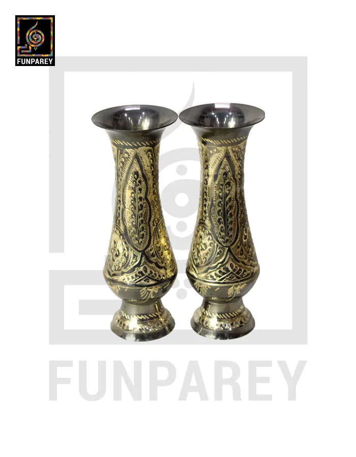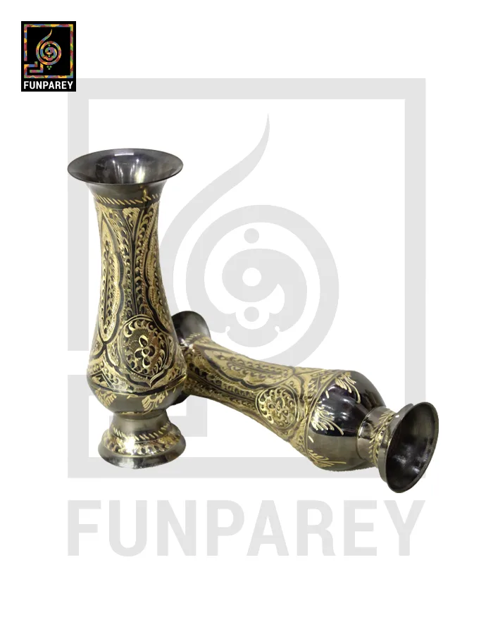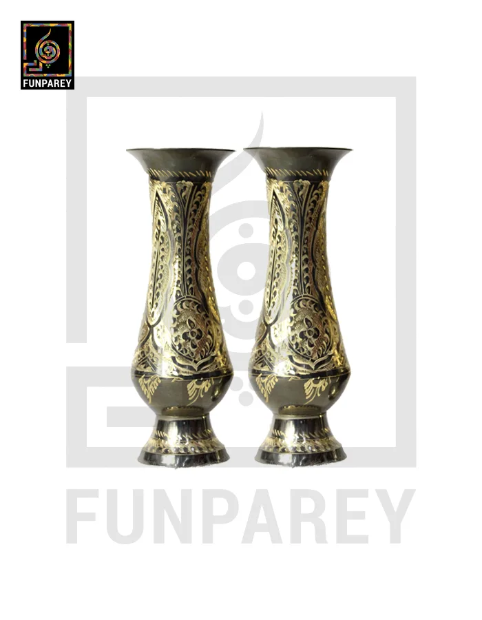 Handmade 10″ Brass Vase Pair ‘Stygian Motif’