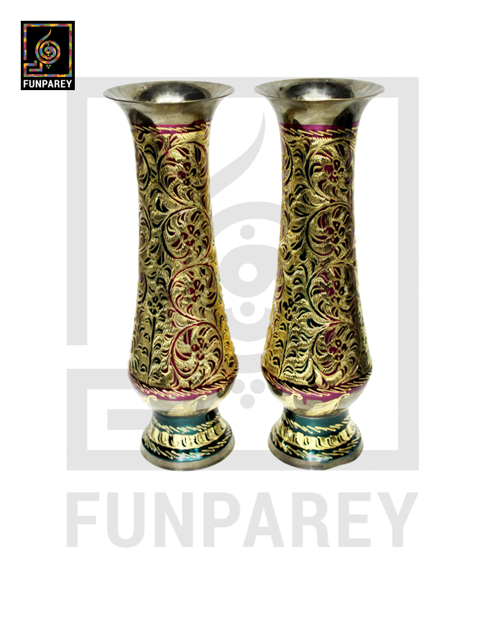 Handmade 14″ Brass Vase Pair ‘Floral Motif’
