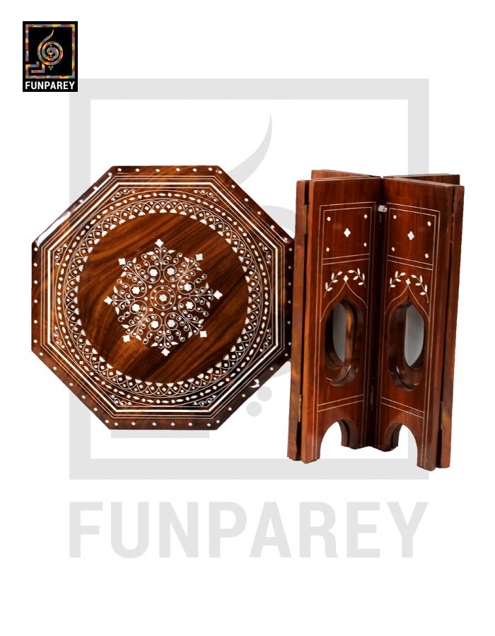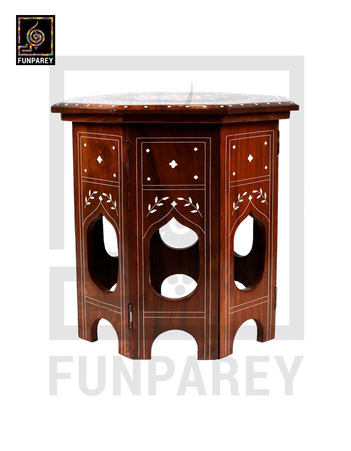 Handmade Octagonal Wooden Table 14″ – Inlaid
