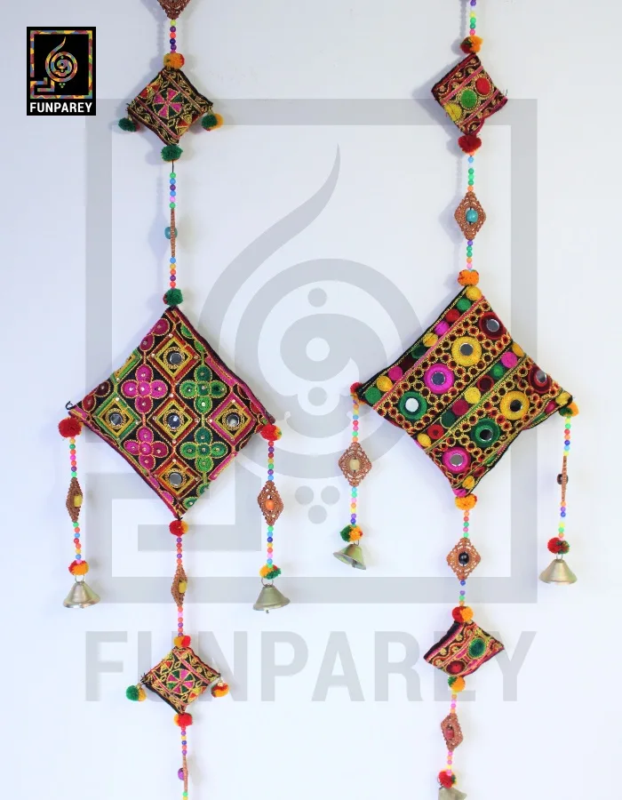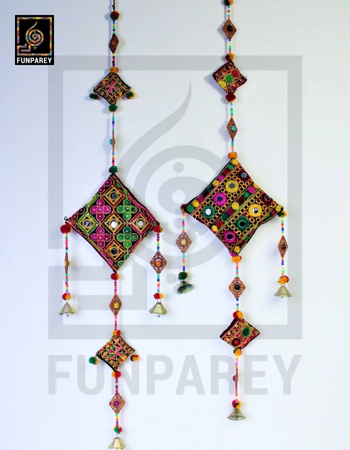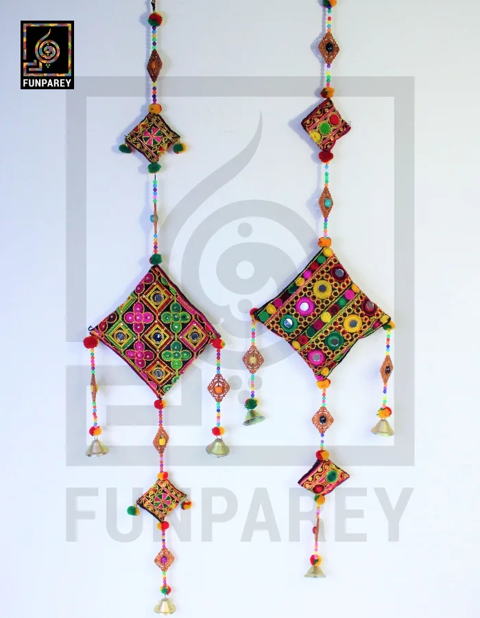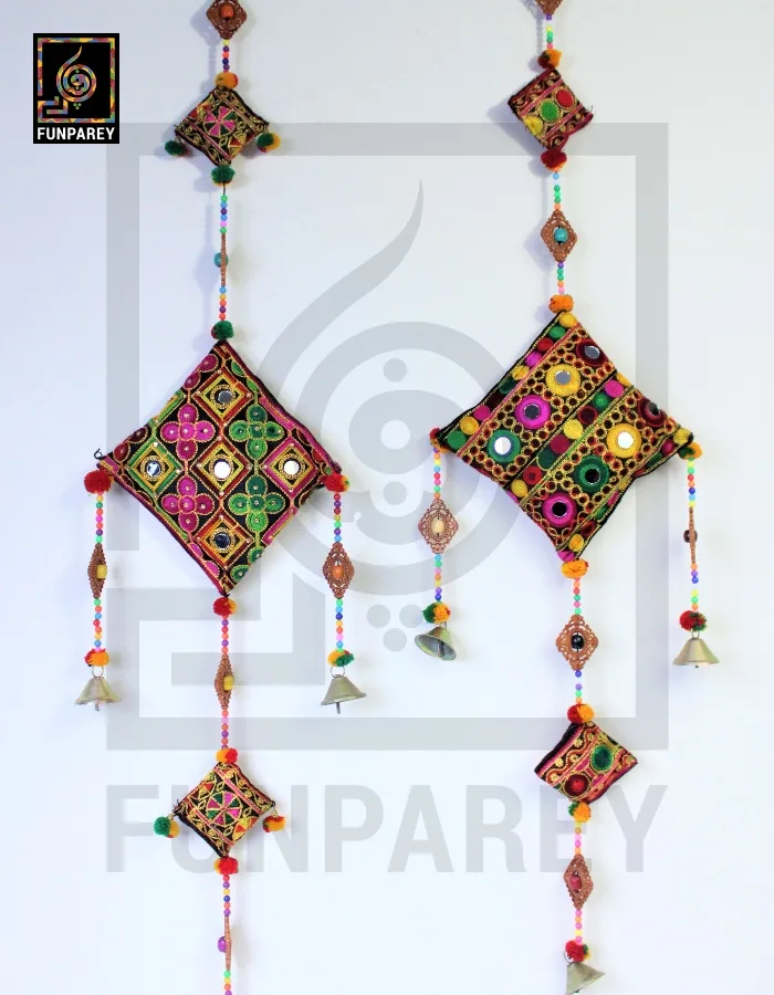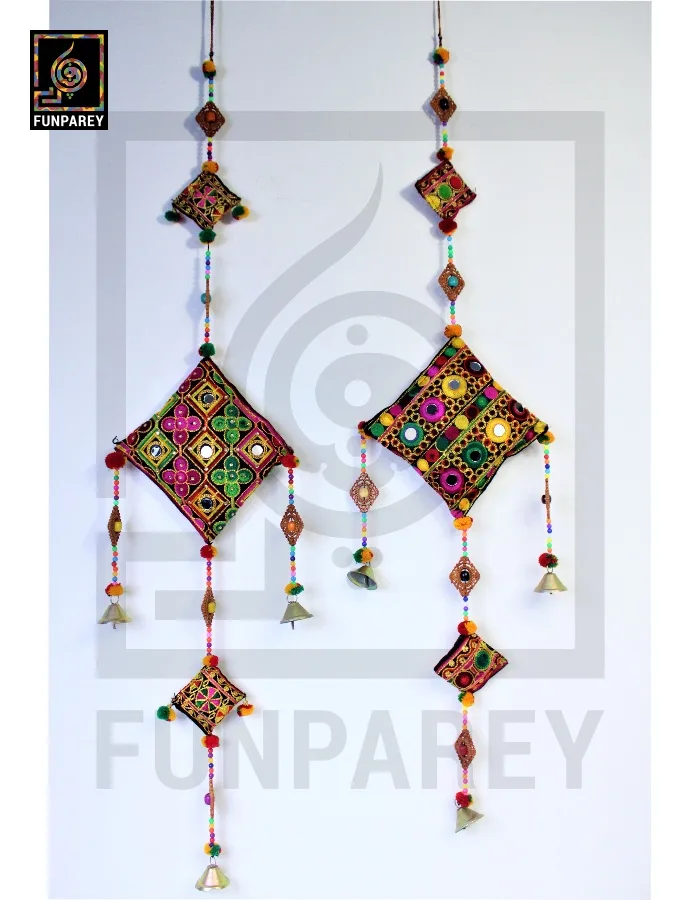 Handmade Antique Embroidered Cushion Door Chime Large Pair