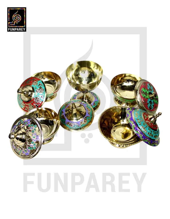 - These Brass Bowl come in multiple color combos, Random color combos of each bowls are shipped with your order.