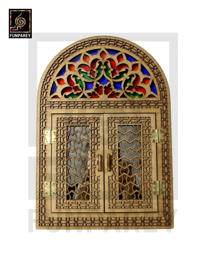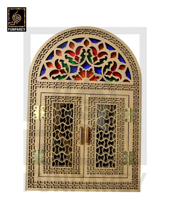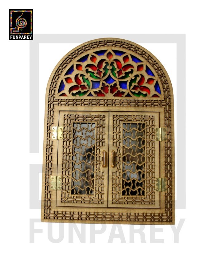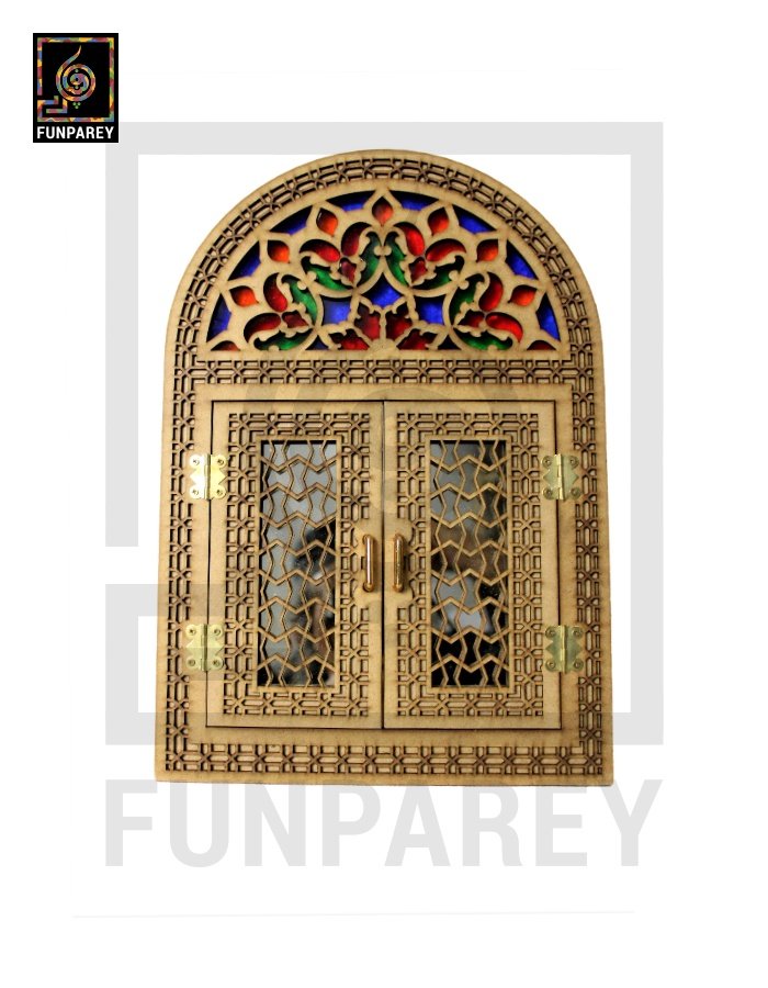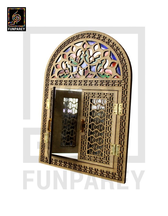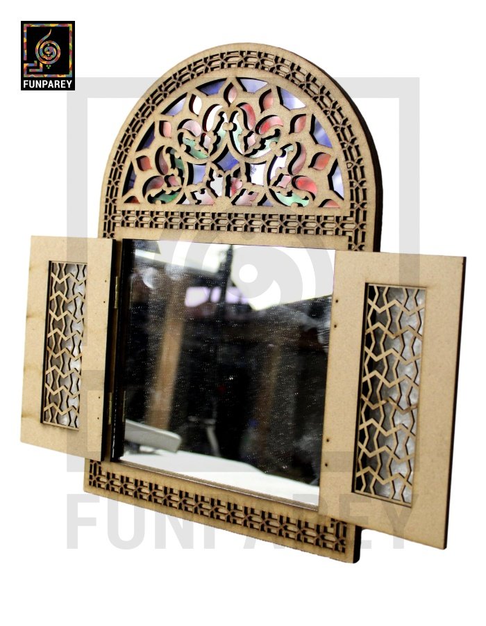 - The doorway mirror is decorated with multicolor Fiber glass sheets on the top side.
