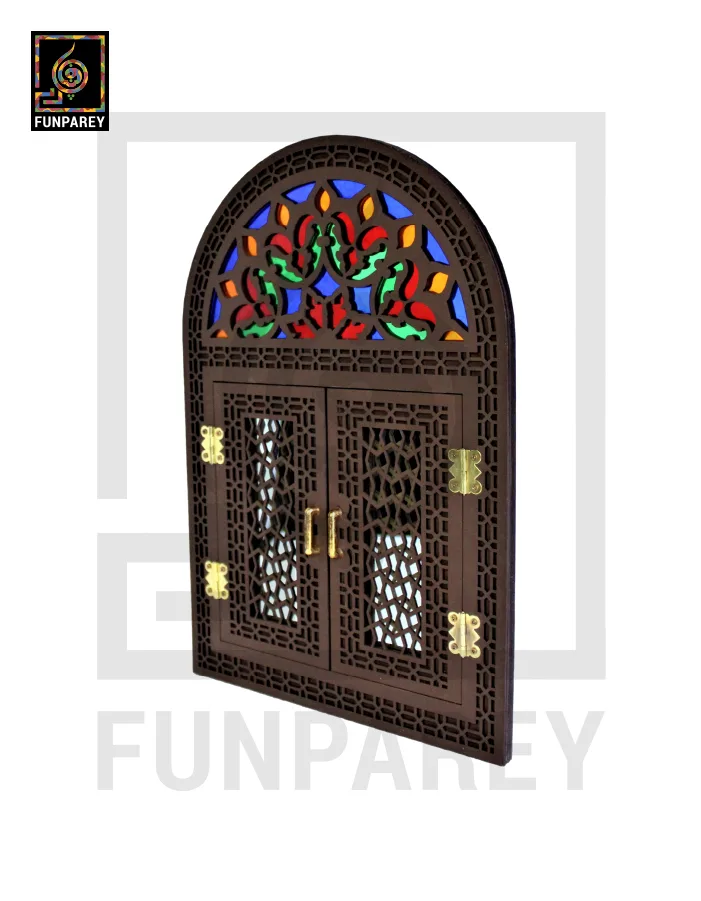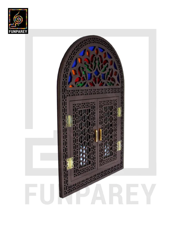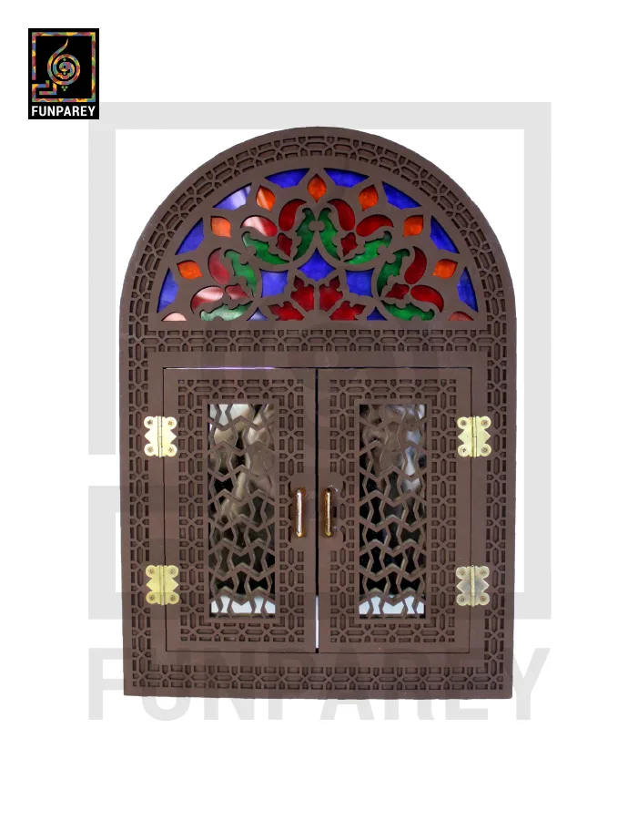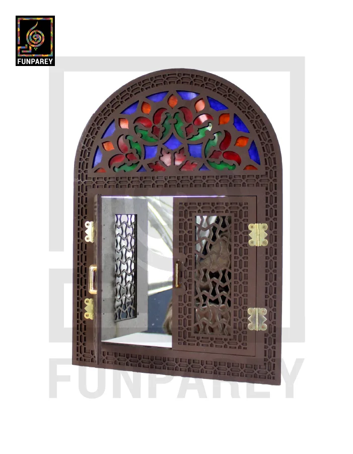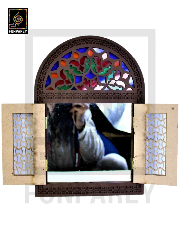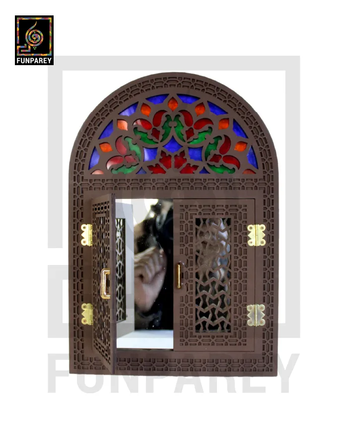 - The doorway mirror is decorated with multicolor Fiber glass sheets on the top side.