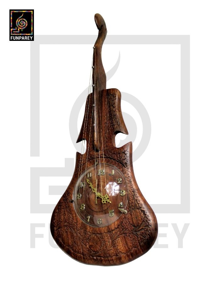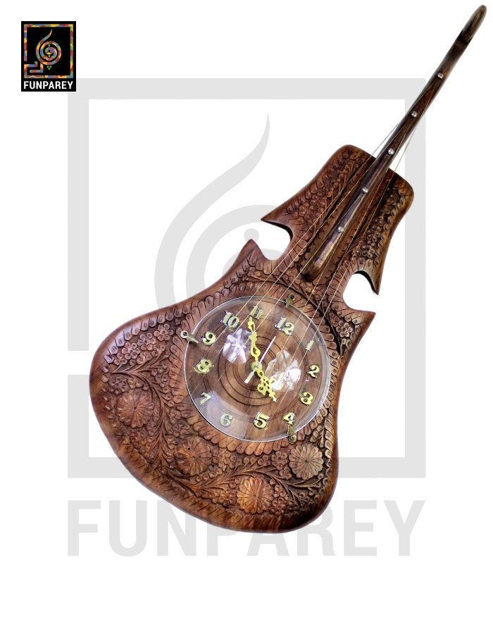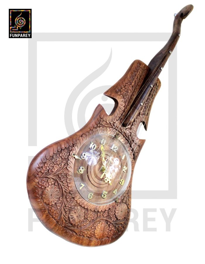 - Wooden Hand Carved Guitar Wall Clock has a length of 29 Inches and width of 12.5 inches.