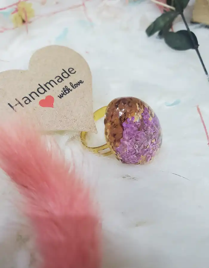 - Unique Design: Handmade oval ring featuring delicate light purple gypsophila flowers.