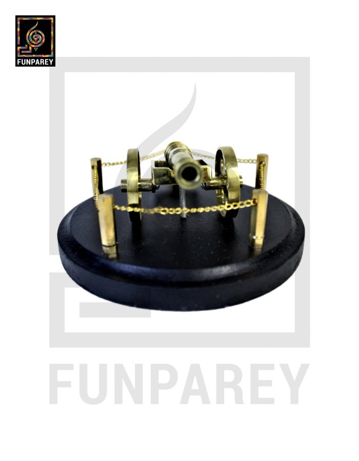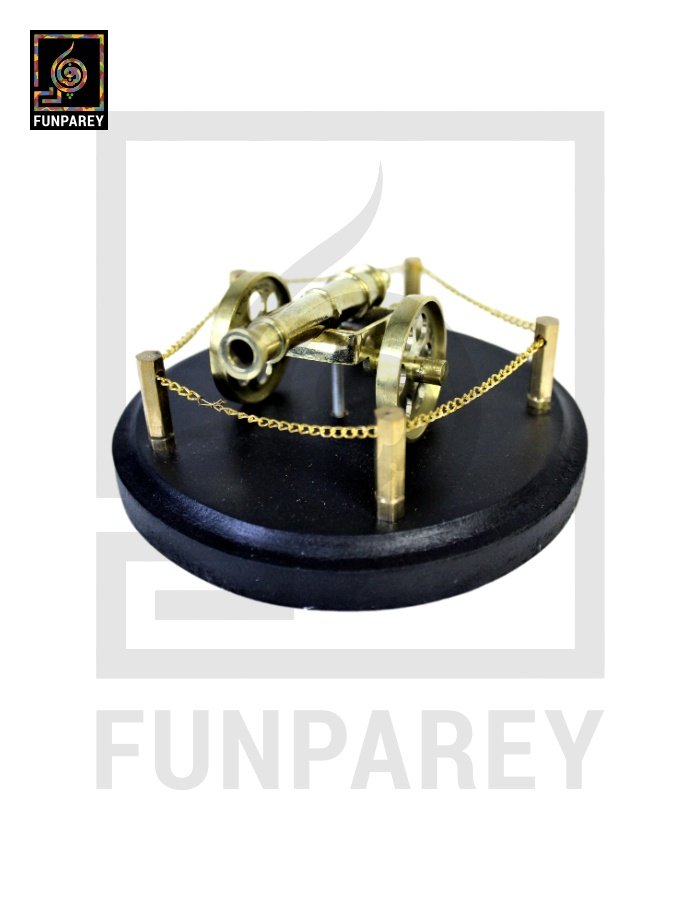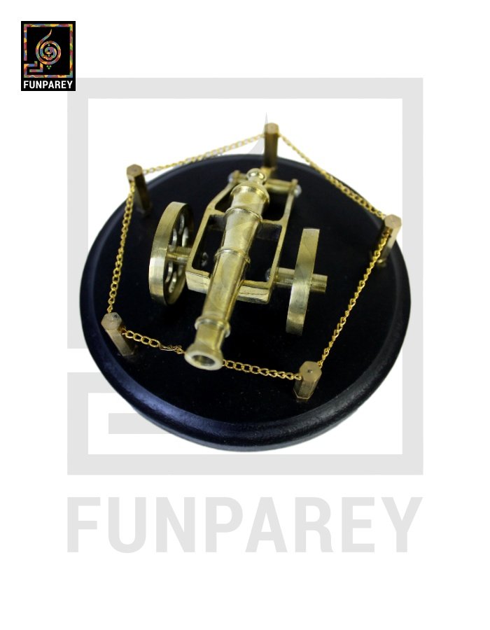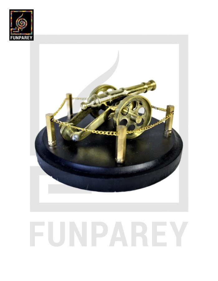 - The piece showcases an old Vintage all metal Cannon on a circular base.