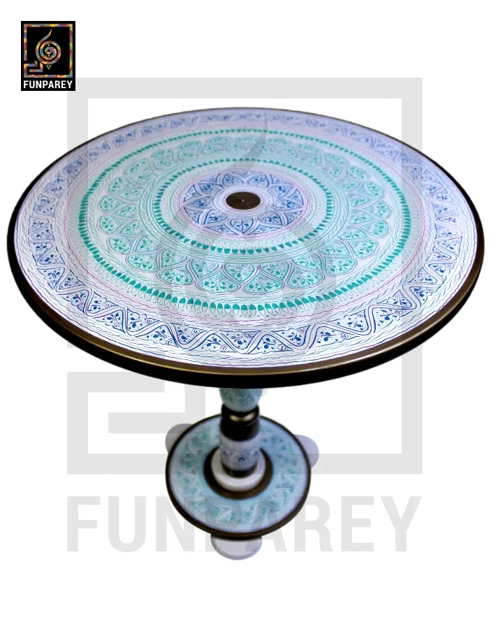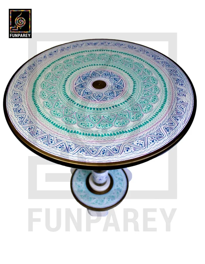 Handmade Wooden Table with White Naqshi Art Jungle Green