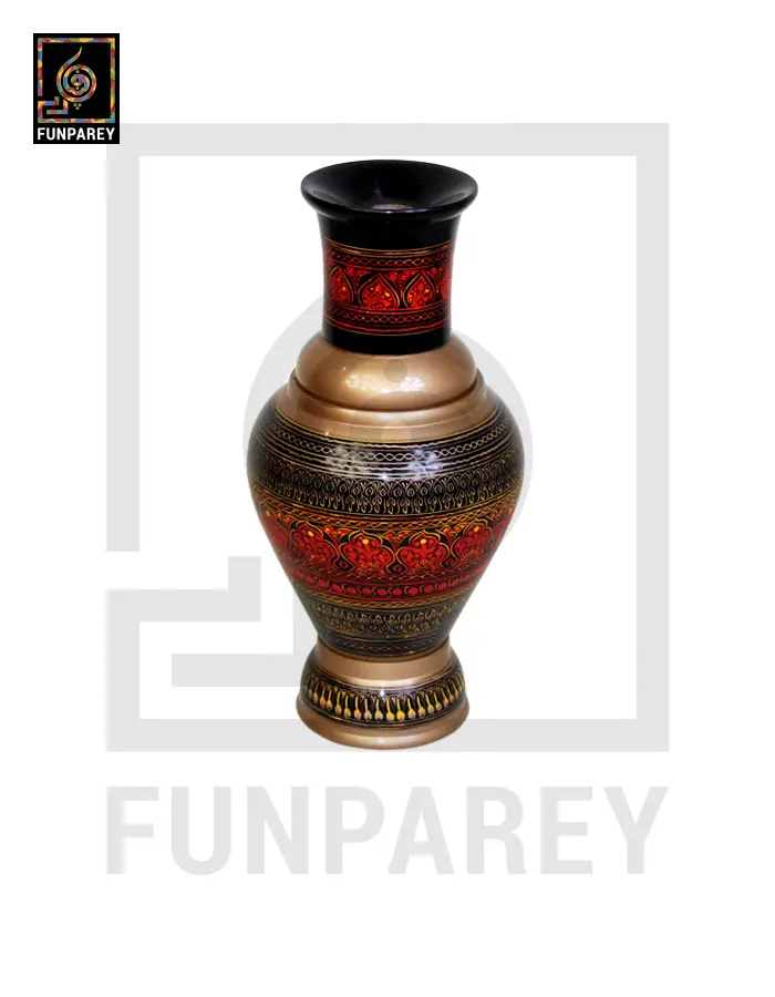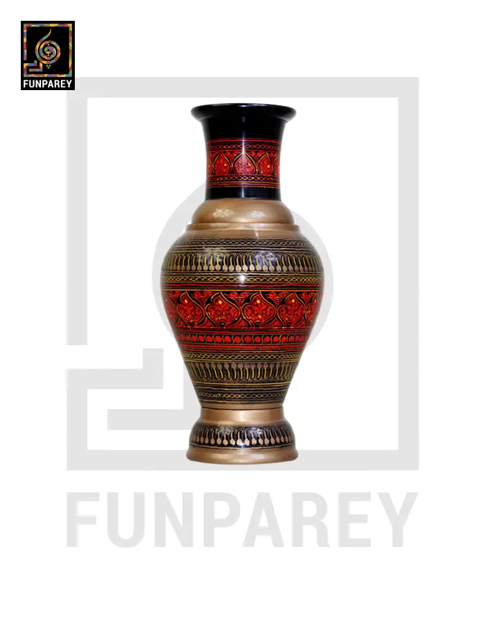 Handmade Wooden Vase Pair with Naqshi Art – 13″ Red