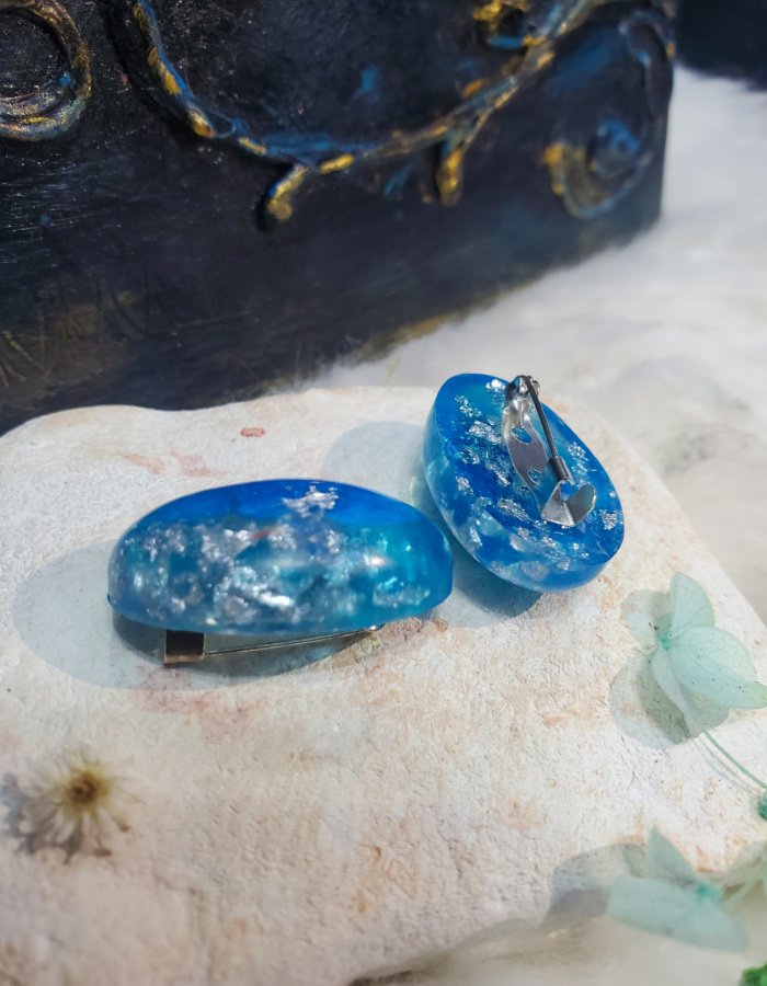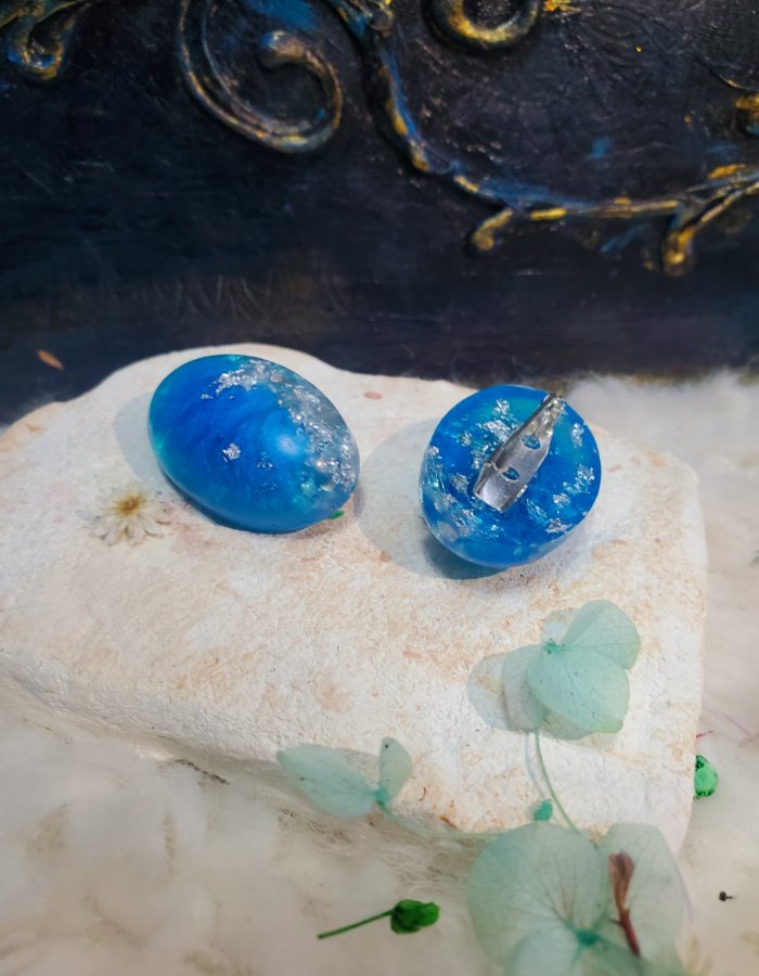 - Glossy blue resin with silver flakes — luminous tones evoking moonlight, clarity, and celestial charm.
