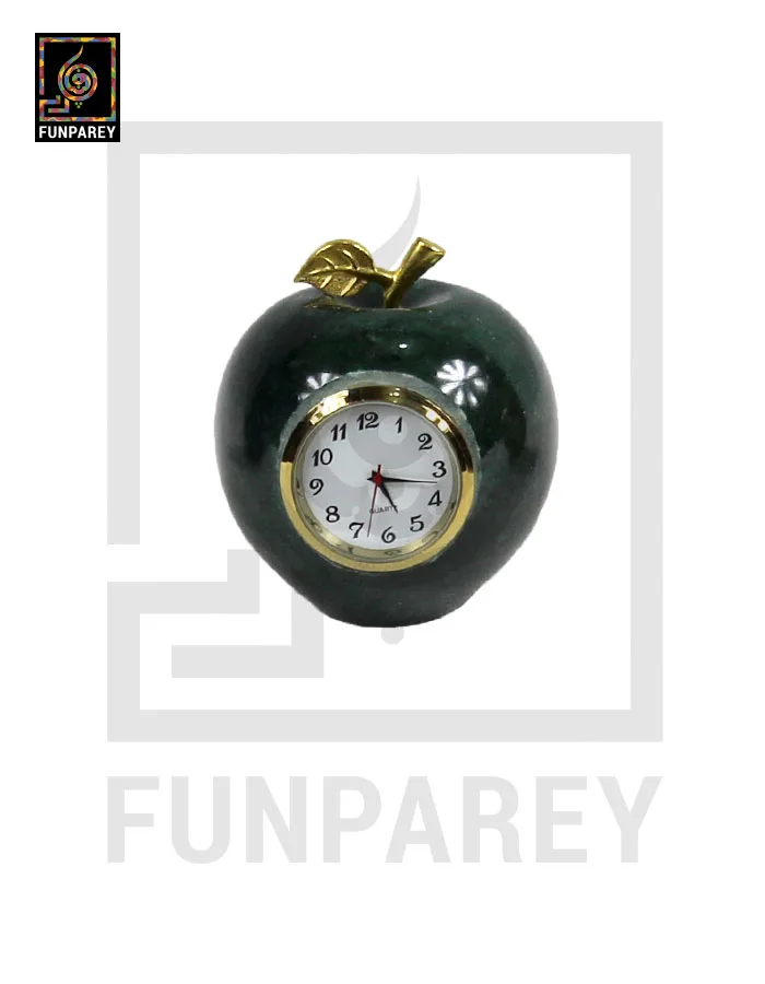 Onyx Stone Apple Shaped Round Table Clock 3″