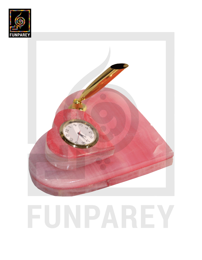 Onyx Stone Multicolor Heart Shaped Desk Clock 6″ PINK