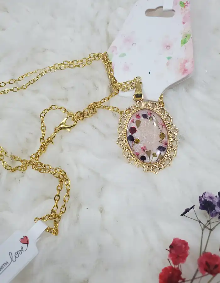 - Chic Rectangle Design: Features a stylish rectangular pendant that highlights the beauty of pressed flowers and leaves.