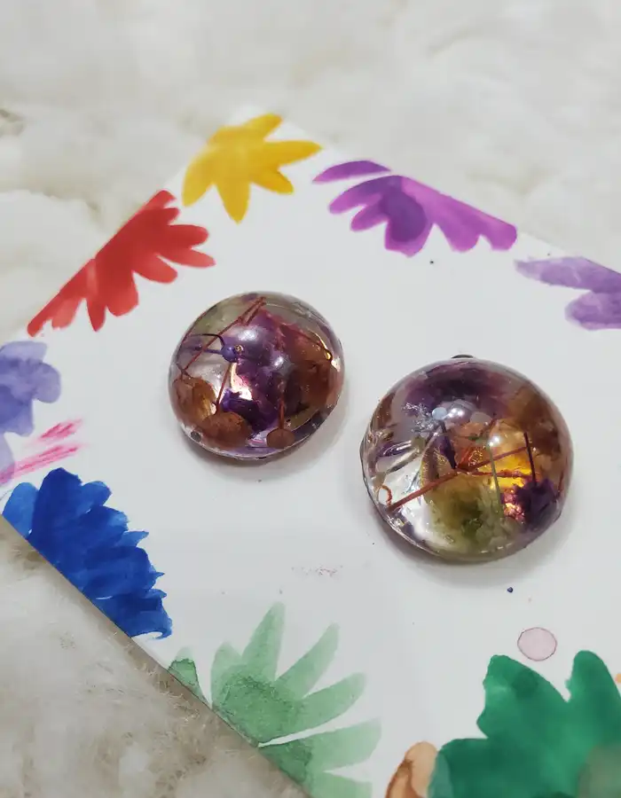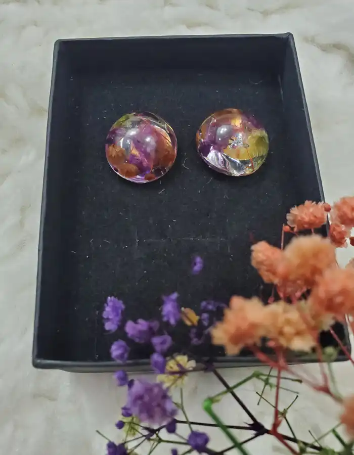 • Vibrant Floral Display: Features two mini pinkish-orange dried flowers and one olive-colored mini dried flower.