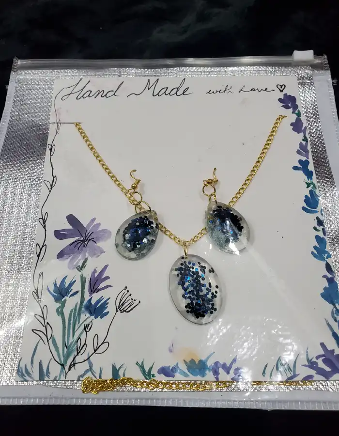 There are no reviews yet. Be the first to review "Resin Jewelry Set - Pendant & Earrings - Blue Glitter" Your email address will not be published. Required fields are markedYour rating