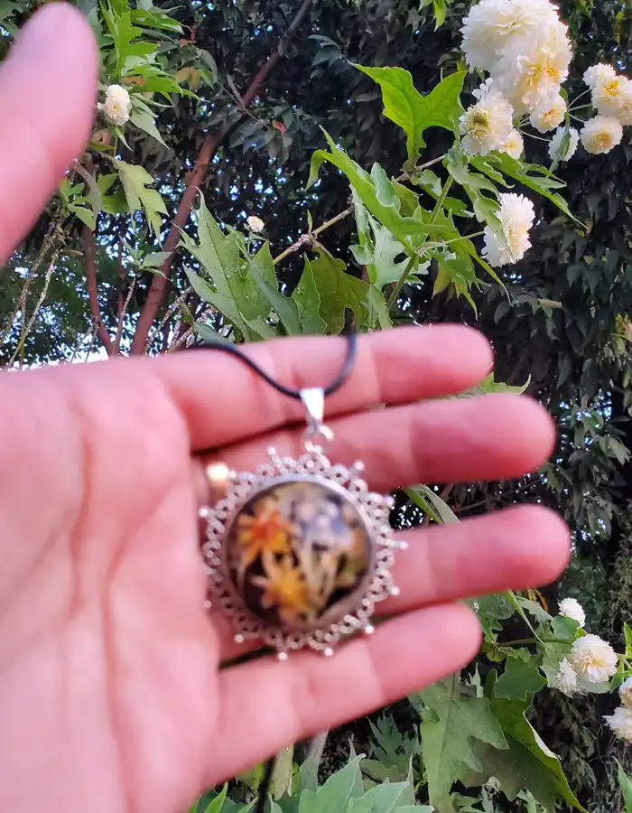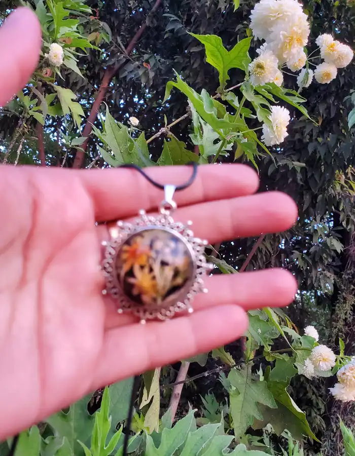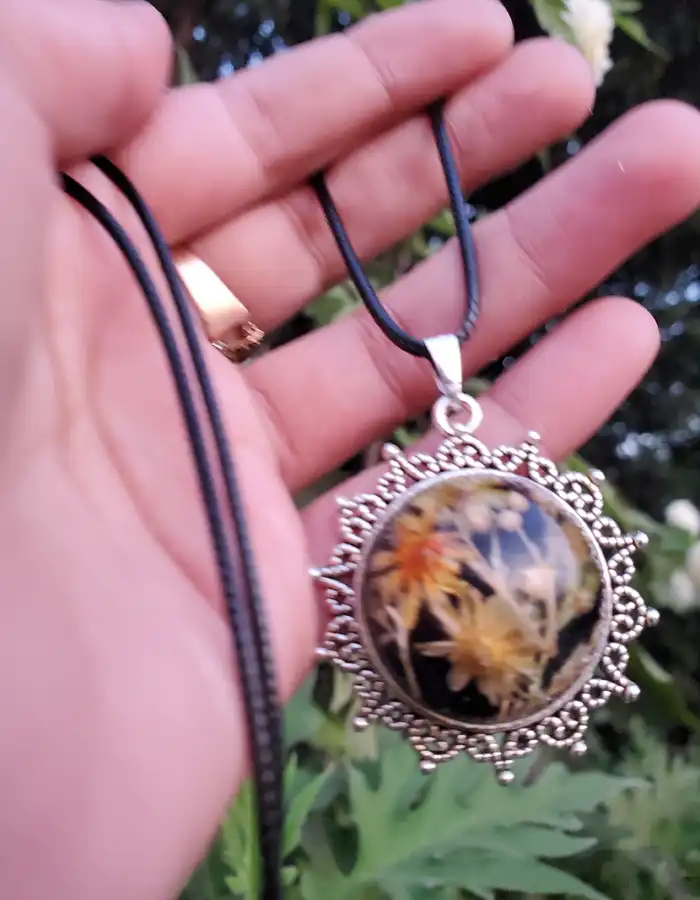 • Striking Contrast: The black resin base beautifully showcases the vibrant colors of the dried pressed flower inside.