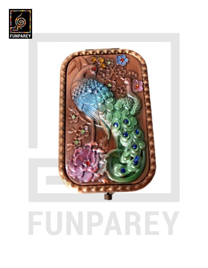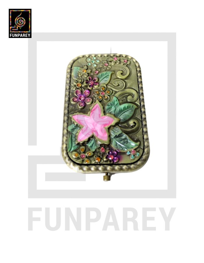- The Surface top side of the Vintage Pocket Mirror is Machine Engraved with Colorful Figurative and Floral Designs.