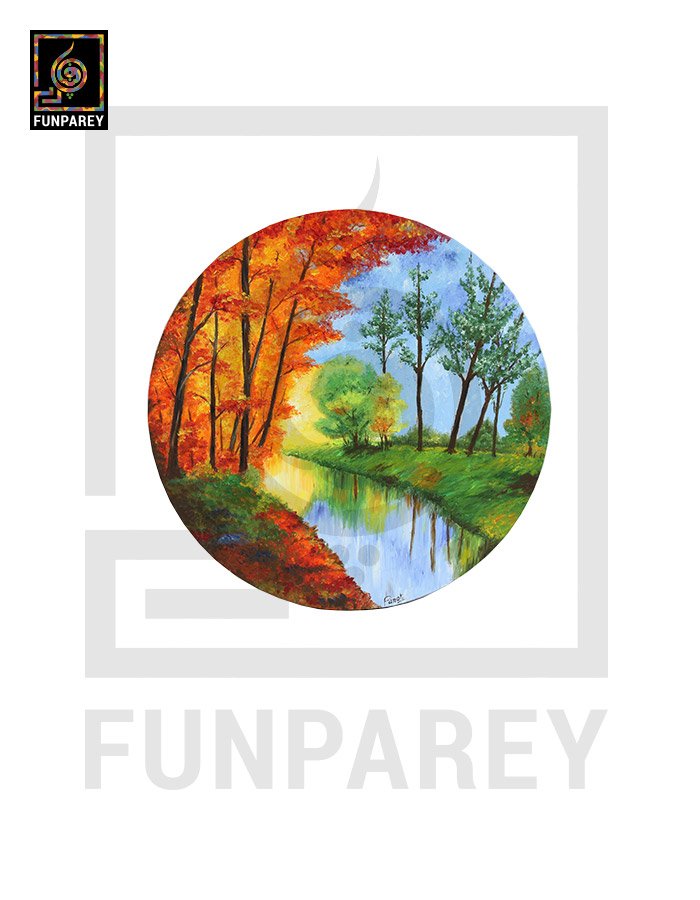 - This is a handmade painting made from oil paints on a 20 inch Round Fabric Canvas.