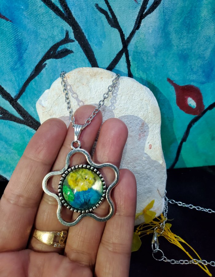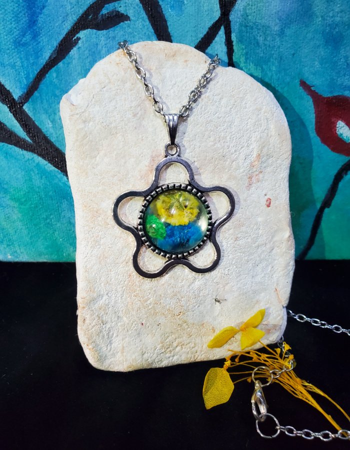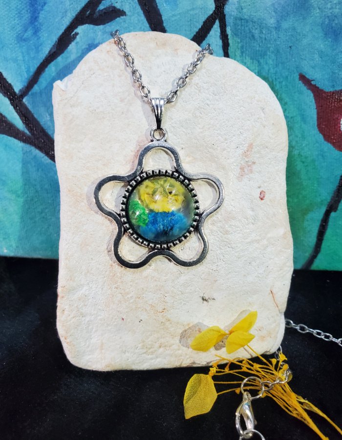 - Embedded multicolor flowers in clear resin — a vibrant garden preserved in luminous detail.
