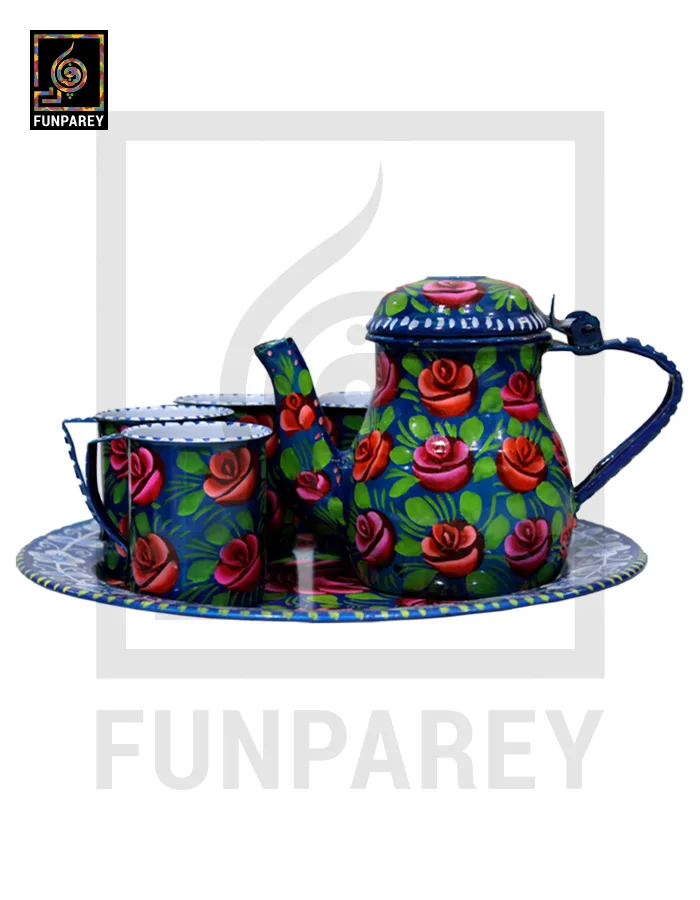 - This is a Set Product. Comes with Taamchini / Enamelware (1) Tea Pot, (4) Cups and (1) Round Serving Tray.