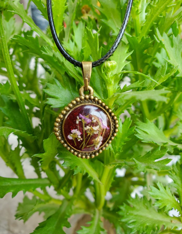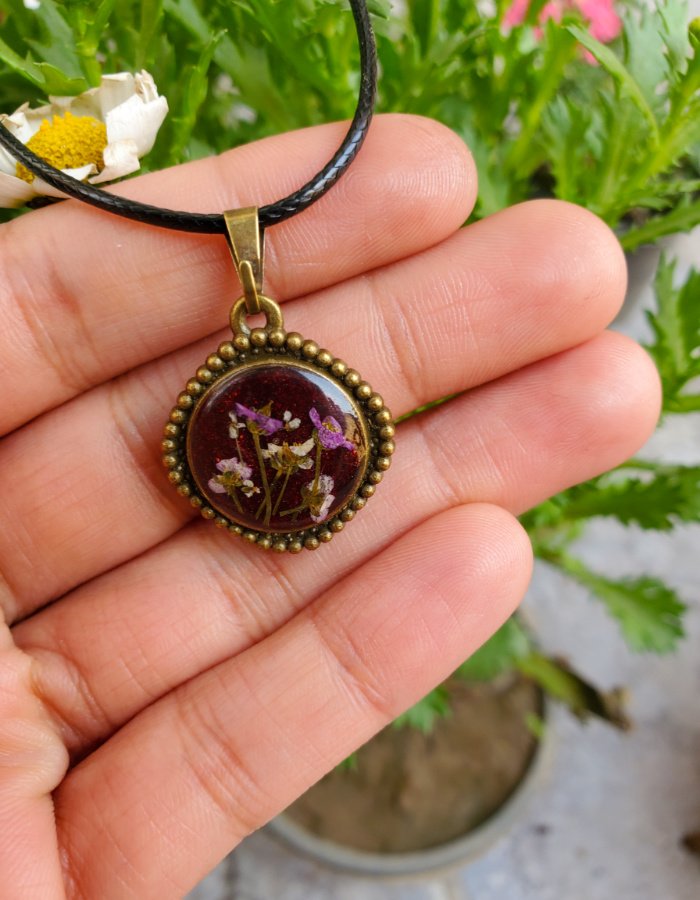 - Embedded purple blossoms — mystery and elegance preserved in resin.
